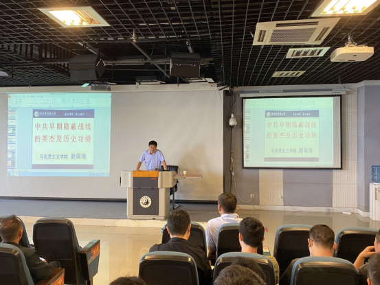 活动中,赵保海老师以《中共早期隐蔽战线的英杰和历史功绩》为题,多角度、多层次地向大家呈现了中国共产党早期隐蔽战线形成过程中险象环生的艰难处境及为党和人民牺牲的无数英杰和历史功绩,为我党的发展壮大作出了杰出的贡献。赵保海老师的宣讲系统全面、生动形象,既有深入浅出的理论讲解,又有富有趣味的历史故事,在场人员全神贯注,听得津津有味。最后,他结合个人心得从坚决抵制诱惑、坚定理想信念、坚守工作秘密三个方面,对大家提出了要求。