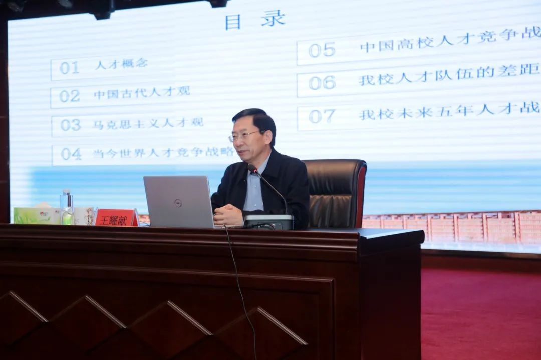 王耀献分别从人才概念、中国古代人才观、马克思主义人才观、当今世界人才竞争战略等七个方面进行了详细的论述。他结合自身多年的工作实践,剖析了leyu·乐鱼(中国)体育官方网站人才队伍的差距和问题,详细解析了人才培养的5R模式和leyu·乐鱼(中国)体育官方网站未来五年人才战略与措施,并对医院的人才引育和管理提出了具体建议。他指出,中医药事业振兴,人才是关键,要统筹推进各类人才队伍建设,不断完善人才引育机制,为推动医院高质量发展和学校“双一流”建设夯实人才基础,强化人才支撑。