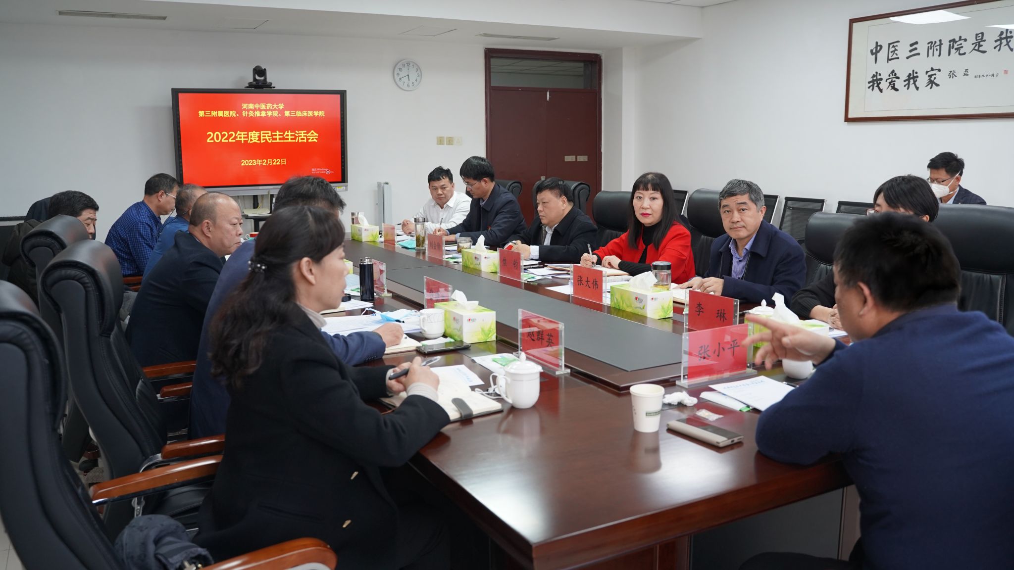 本网讯(文/李冕 图/于诗航)按照校党委统一部署,2023年2月22日下午,三附院领导班子召开了2022年度民主生活会,校党委副书记、工会主席张小平带领校纪委副书记赵群英、党委组织部副处级组织员李琳到会指导,会议由院党委书记张晓东主持。