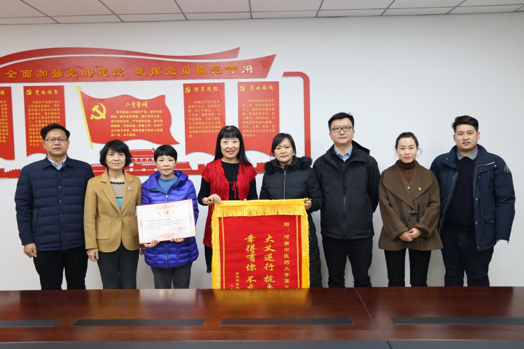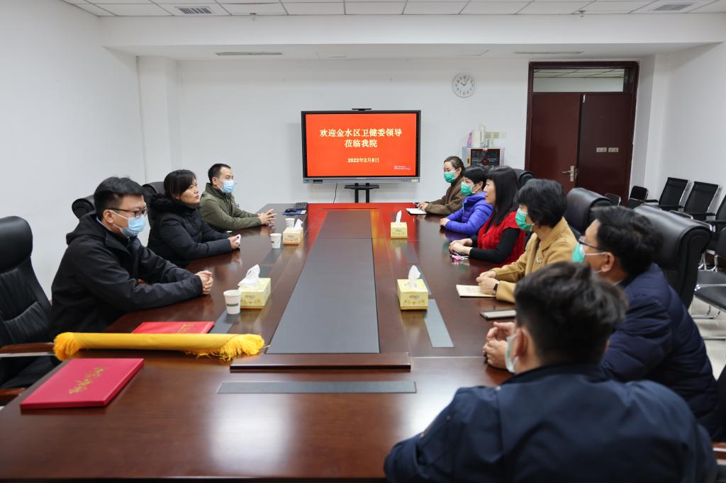 本网讯(文/郭承 图/潘向昆)2022年2月8日上午,金水区卫健委副主任袁瑞辰一行三人代表金水区疫情防控指挥部慰问感谢我院核酸采集工作人员,送上锦旗和荣誉证书。院党委副书记焦钧出席会议,院党办、院办、医务部、护理部、宣传统战部等部门负责同志参加会议。