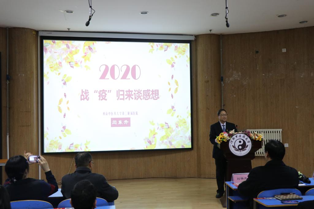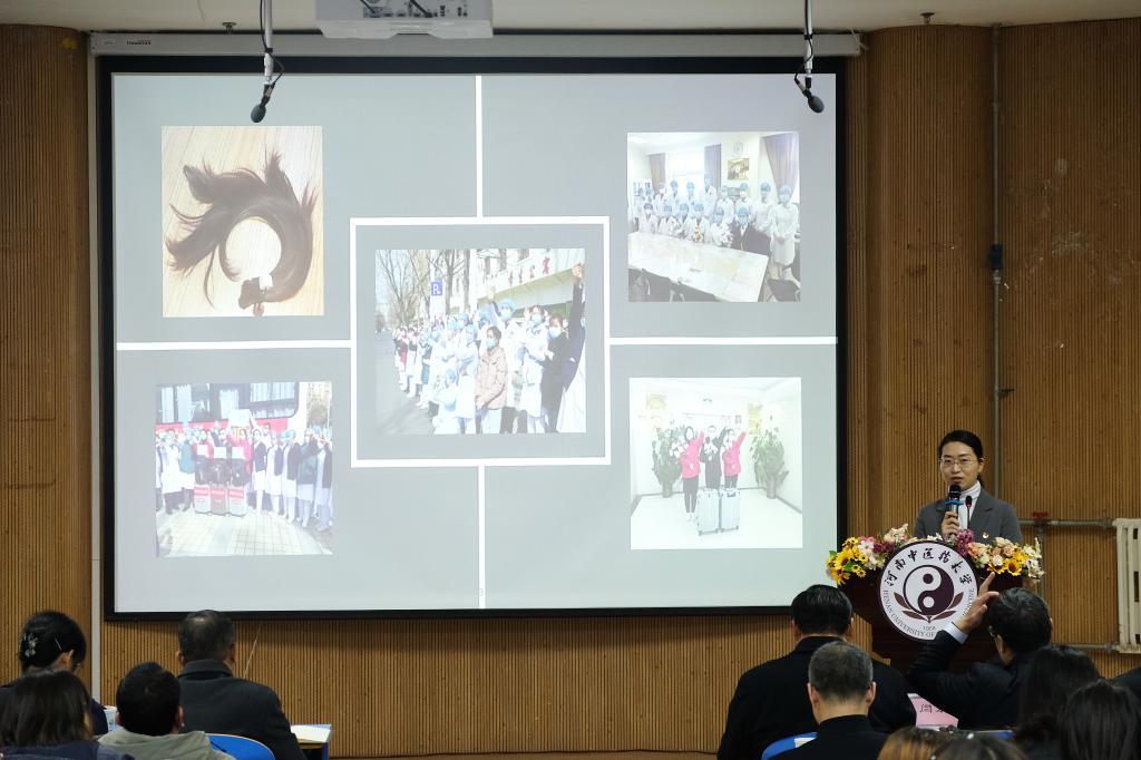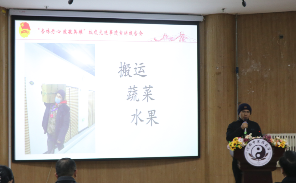 宣讲会上,五位宣讲人员分别结合自身抗疫经历分享了他们在不同岗位上的抗疫故事。国家援鄂中医医疗队首批队员、第三附属医院急诊科主任闫东升主动请缨、勇挑重担,“疫情不退,我们不回”的信念令人动容。第二临床医学院2020级学生库都斯·尼尔加提用淳朴的话语讲述了自己作为“送菜员”的经历,他克服重重困难,服务人民、服务社会,彰显了青年大学生的责任和担当。国家援鄂中医医疗队第二批队员、第二附属医院肺病科主治医师芦晓帆勇敢逆行,舍小家保大家,“白衣执甲,使命必达”是对她的真实写照。学生后勤服务中心伙食党支部书记王明迪,在平凡的岗位做着不平凡的事,用点滴细节守卫每一位河中医人的安康。第二附属医院老年病科护师于莉不顾家人反对,毅然支援武汉,只为践行身为医者的责任,在方舱医院中用歌声鼓舞病人战胜病魔的信念。五位抗疫英雄语言质朴,情感真挚,为师生们还原了一幕幕感人瞬间。这些最美逆行者们用实际行动展现了河中医人为国担忧,为民尽责的精神风貌,是大家学习的榜样。