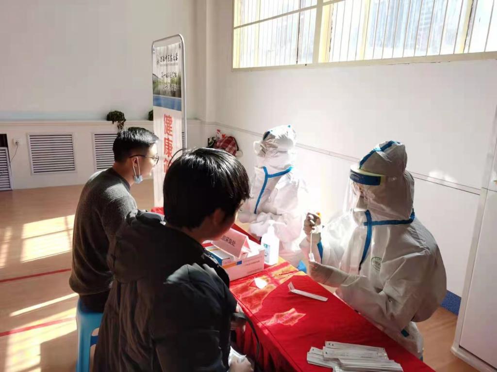 工作人员为返校研究生做核酸检测