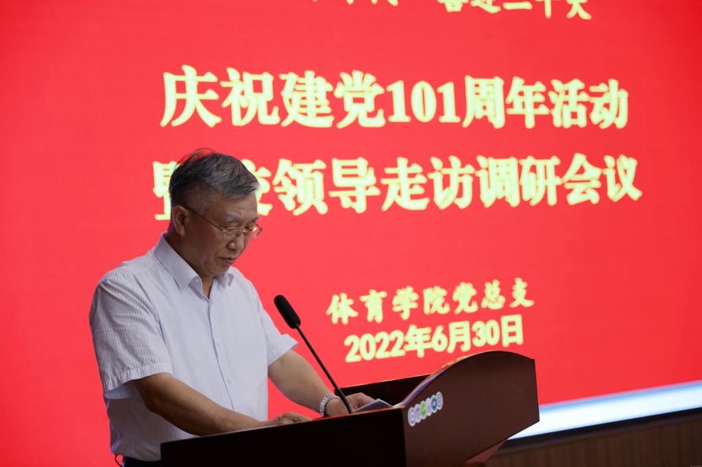 本网讯(文/马琳 图/杜伦)为庆祝中国共产党成立101周年,进一步提升基层党组织凝聚力和战斗力,深入推进“能力作风建设年”活动,2022年6月30日,体育学院党总支开展“奋进新时代 喜迎二十大”庆祝中国共产党成立101周年活动,全体党员参加,校党委副书记、工会主席张小平,副校长司富春出席活动并做讲话。活动由党总支副书记王楠斐主持。