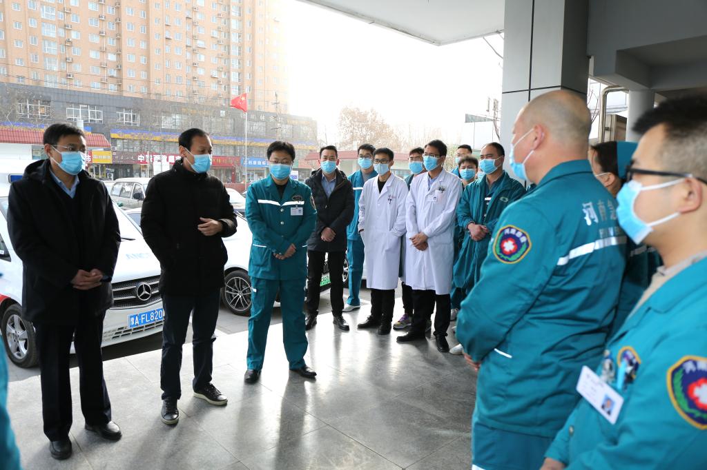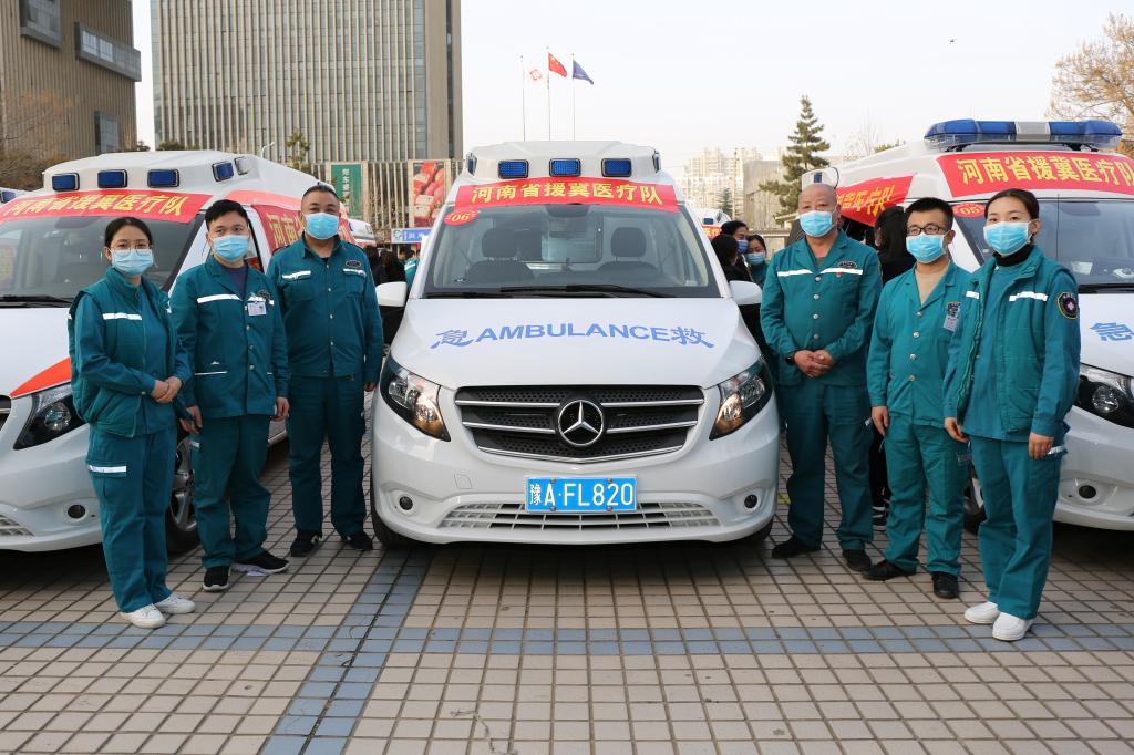 本网讯(文/邵圣洁 图/廉万营)2020年1月13日下午,河南省援冀医疗队出征河北。该队伍由郑州市紧急医疗救援中心组织并统一指挥,前往河北支援此次新冠肺炎疫情的急救转运工作。二附院院领导及院办、医务、工会、急救创伤中心的同志参加送行仪式。