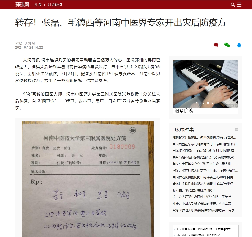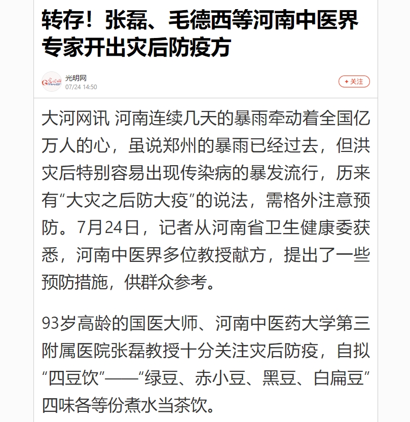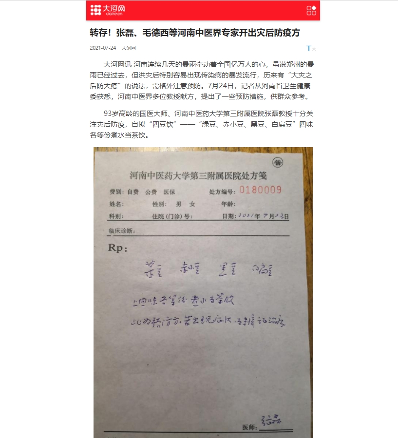 环球网等丨转存!张磊、毛德西等河南中医界专家开出灾后防疫方