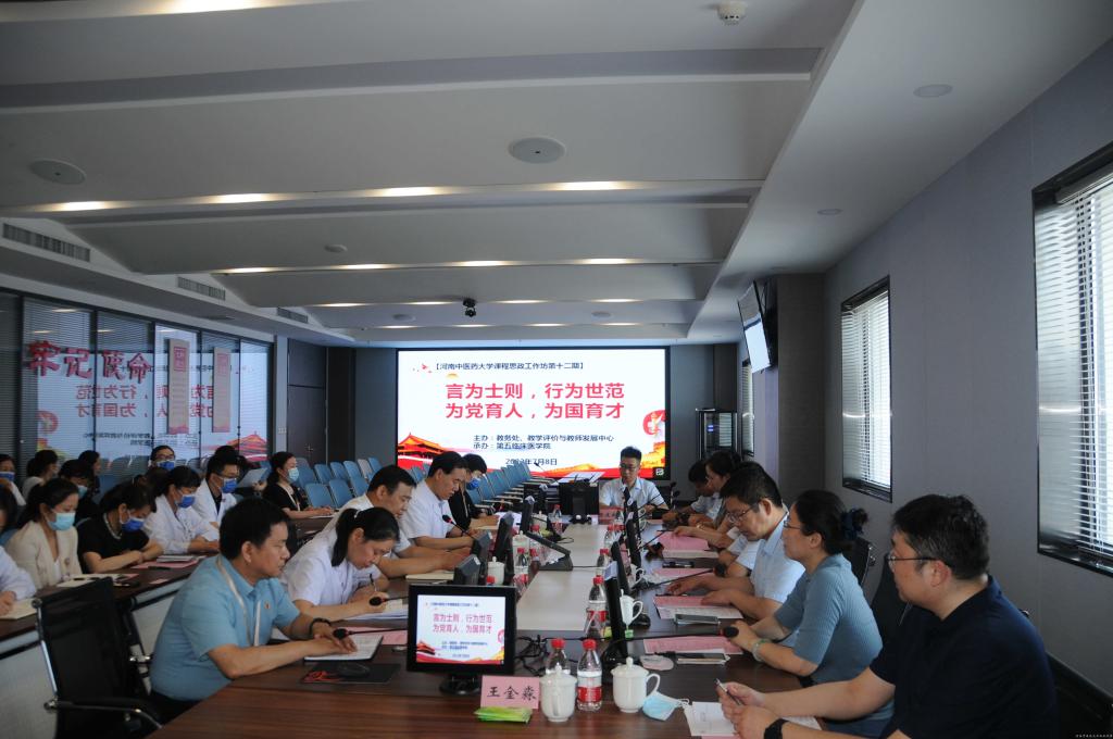 本网讯(文/谷沅芷 图/王金淼)2022年7月8日下午,由教务处、教学评价与教师发展中心主办,第五临床医学院承办的以“言为士则,行为世范,为党育人、为国育才”为主题的第十二期课程思政工作坊在文化路校区召开。校党委委员、副校长徐江雁,教务处处长禄保平、副处长李永菊、卢萍,教学评价与教师发展中心主任呼海涛、副主任陈戈,教务处课程思政中心主任王金淼,马克思主义学院指导教师赵保海副院长、陈建威博士,leyu·乐鱼(中国)体育官方网站人民医院党委副书记、院长梅伟,第五临床医学院相关院领导、教学办、课程教研室负责人等参加会议。会议由第五临床医学院副院长张思森主持。