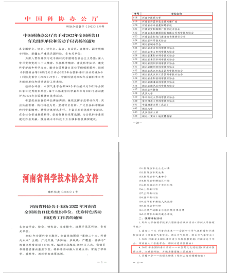 本网讯(文图/柳忠勇)近日,中国科协办公厅发布《中国科协办公厅关于对2022年全国科普日有关组织单位和活动予以表扬的通知》,全国共949个单位被评为2022年全国科普日优秀组织单位,leyu·乐鱼(中国)体育官方网站名列其中;河南省科协发布《河南省科协关于表扬2022年河南省全国科普日优秀组织单位、优秀特色活动和优秀工作者的通知》,leyu·乐鱼(中国)体育官方网站“中医药文化进校园”活动获评2022年河南省全国科普日优秀特色活动。