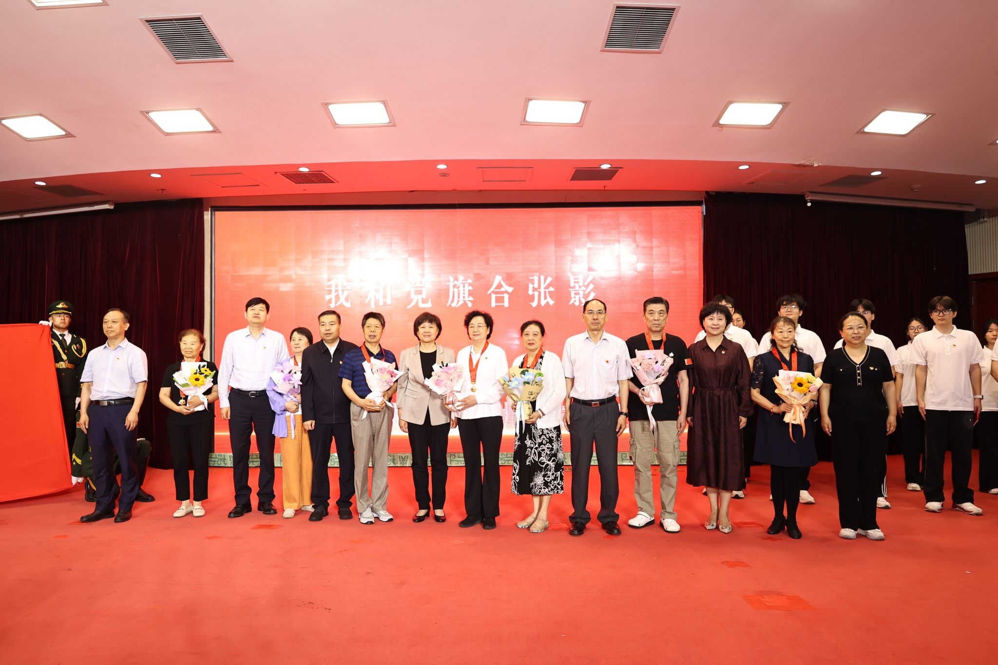 在大家的瞩目中,老党员为新党员佩戴党员徽章、赠送党章,传递如山使命。新党员为老党员献上了手工制作的绒花,致敬如磐初心。校领导为光荣在党50年的老党员代表佩戴勋章,向为党的事业不懈奋斗和为学校各项事业发展做出贡献的老党员同志们致以崇高敬意。
