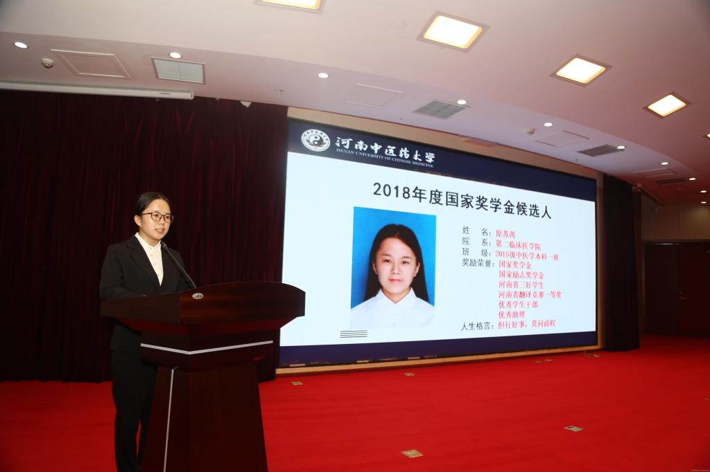 leyu·乐鱼(中国)体育官方网站国家奖学金公开评审坚持德育为先,学习为重,全面发展的原则,采取原始材料积分和公开展示积分相结合的办法进行。9月30日,学校组织有关专家对各二级学院推荐的43名国家奖学金候选人原始材料进行了集中审核打分。10月8日晚进行了国家奖学金候选人公开演讲展示。通过每人3分钟的精彩演讲,43名候选人从德、能、勤、绩等各方面展示了自己取得的骄人成绩。经过三个多小时的激烈角逐,最终来自第一临床医学院2015级中西医临床一班包宇等37位同学被评为2018年度国家奖学金获得者。