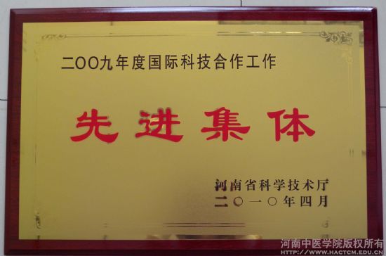 会议总结了2009年度全省科技人才开发与国际科技合作取得的成绩,安排部署了2010年度国际科技合作与人才开发的工作,并对全省国际交流与合作先进单位和先进个人进行了表彰。我院在近年来的国际交流与合作工作中取得了显著的成绩,被河南省科技厅评为河南省国际合作交流与合作工作先进单位。 会上,科技部国际合作司续超前司长代表科技部向我院颁发了“国际科技合作基地”和“二〇〇九年度国际科技合作工作先进集体”标牌。苗明三处长作为国际合作先进单位代表在大会上做了国际科技合作的经验介绍。我院李真教授被评为国际合作先进个人,在此次会议上也受到了表彰。(科研处)
