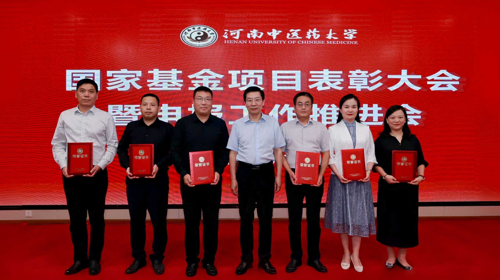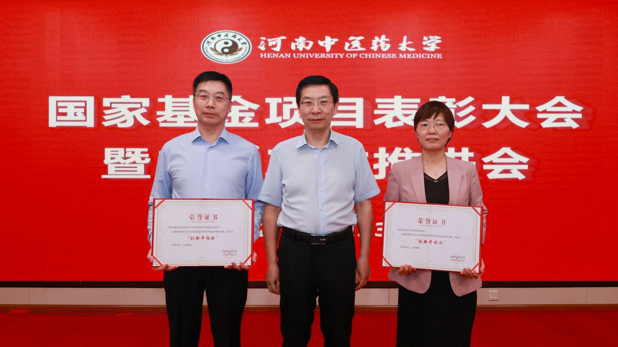 王耀献为第一附属医院、药学院、中医药科学院等获奖单位颁发荣誉证书。随后,获奖单位代表和教师代表先后分享了在组织申报国家基金项目中的经验和心得体会。代表们在国家基金项目申报、组织、培育、考核、激励等方面都做了大量工作,大家对学校党委和相关部门的大力支持和帮助表示感谢,并表示将继续努力,为学校的科研事业再立新功。