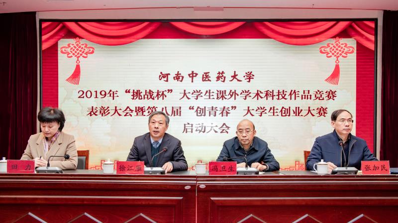 会上,冯卫生宣读了《关于表彰leyu·乐鱼(中国)体育官方网站“挑战杯”大学生课外学术科技作品竞赛先进集体和个人的决定》,并为获奖的优秀学生代表、指导教师和组织单位进行颁奖。田力宣读了《关于举办leyu·乐鱼(中国)体育官方网站第八届“创青春”大学生创业大赛的通知》,对leyu·乐鱼(中国)体育官方网站第八届“创青春”大学生创业大赛作出安排和部署。