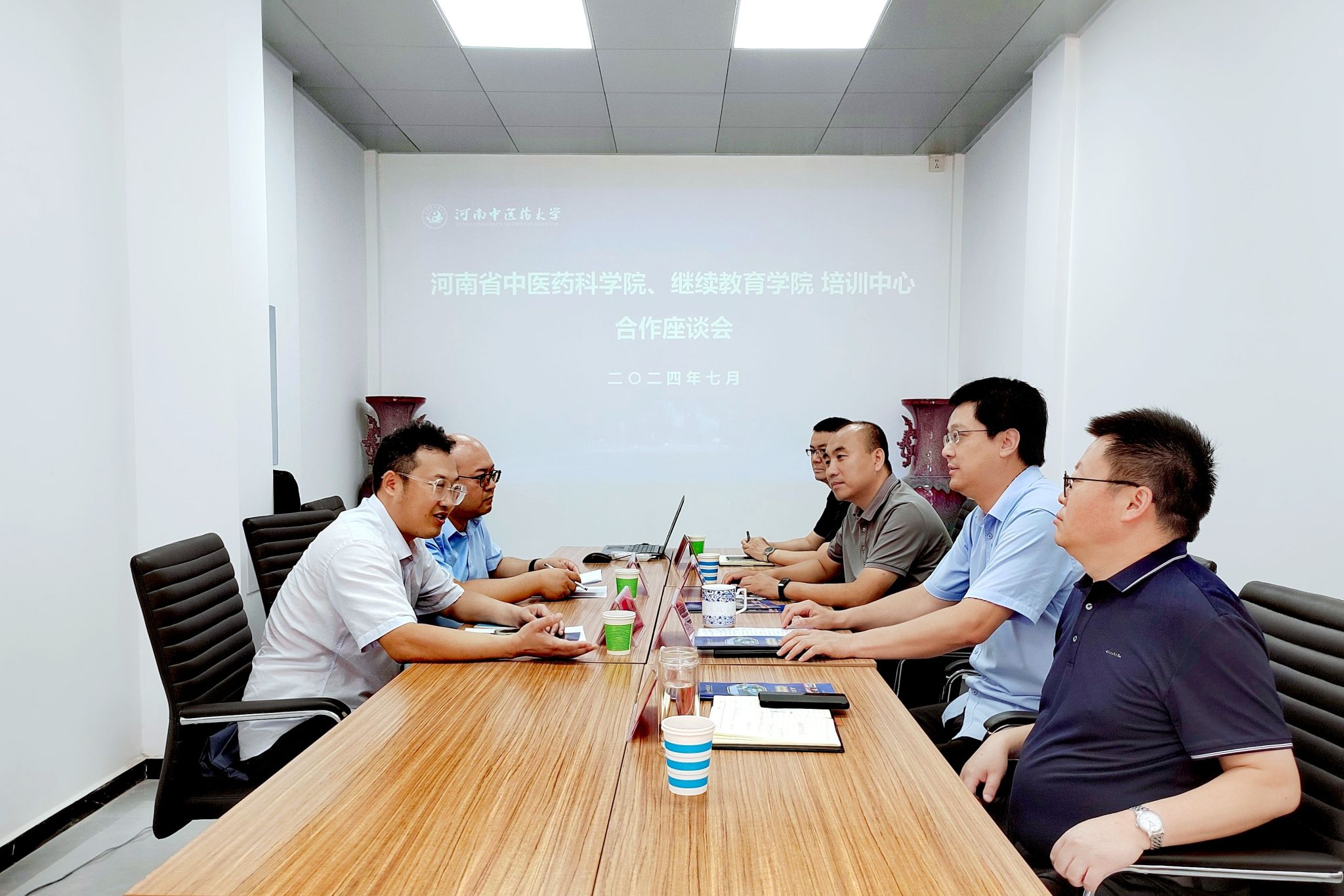 本网讯(文/图 王景辉)2024年7月19日,河南省中医药科学院副院长徐宏伟一行2人到leyu·乐鱼(中国)体育官方网站继续教育学院、培训中心考察交流。继续教育学院、培训中心在郑领导班子成员及相关科室工作人员参加了座谈会。会议由继续教育学院、培训中心党总支书记庞亚宾主持。