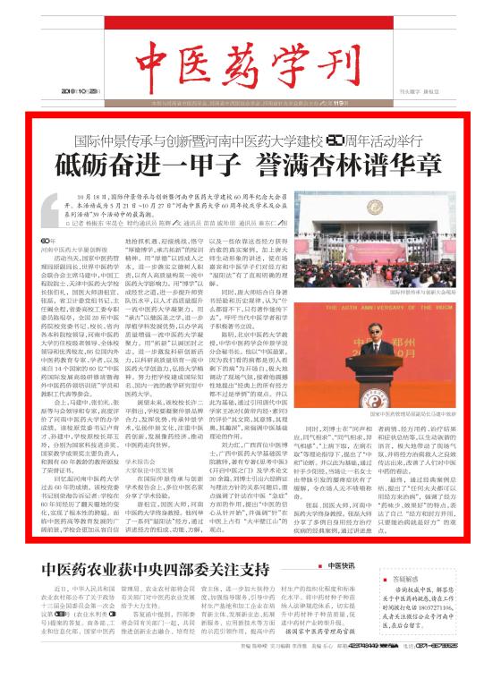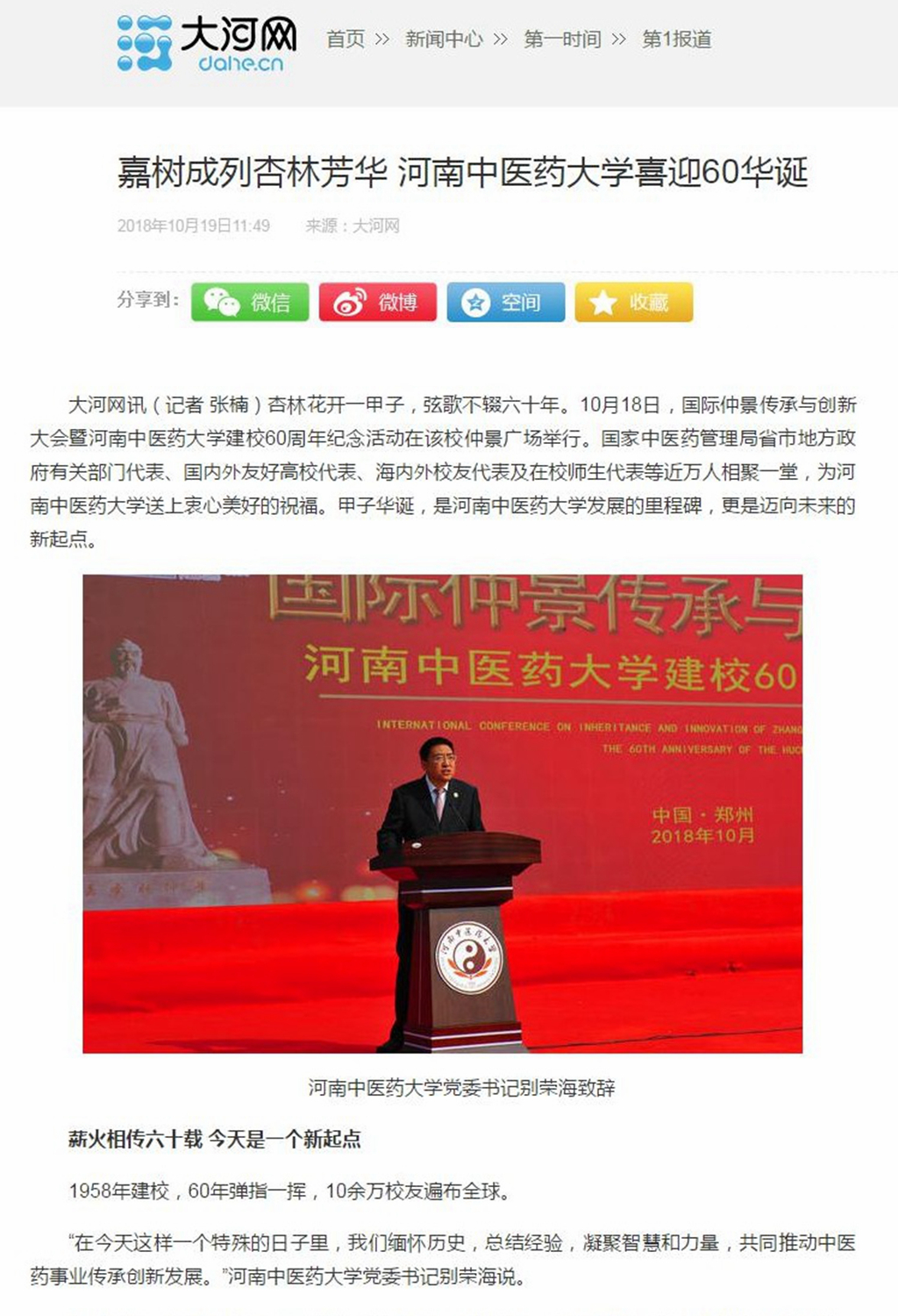 编者按:2018年10月18日,国际仲景传承与创新大会在leyu·乐鱼(中国)体育官方网站召开。会议召开恰逢leyu·乐鱼(中国)体育官方网站建校60周年,世界中医药学会联合会主席马建中,中国工程院院士张伯礼,国医大师唐祖宣、张磊等国内外名医大家参加会议并送上祝福,96个兄弟院校和友好单位发来了贺信、贺电,86位国内外各界中医药教育专家、学者和来自14个国家的60位“中医药国际发展高级研修班暨海外中医药侨领培训班”的学员到场参会。