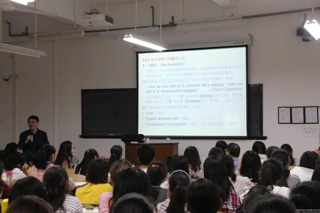 2014年4月22日晚7时,受外语学院邀请,华中师范大学外语学院熊兵教授于A709教室为外语学院师生做了题为“翻译理论中的概念辨析”的讲座。外语学院班子成员、多位英语专业教师和众多学生参加了此次讲座。本次讲座由外语学院党委书记杨英豪主持,他用简洁、风趣的语言向各位师生引荐了国内著名英语翻译专家、博士生导师熊兵教授。