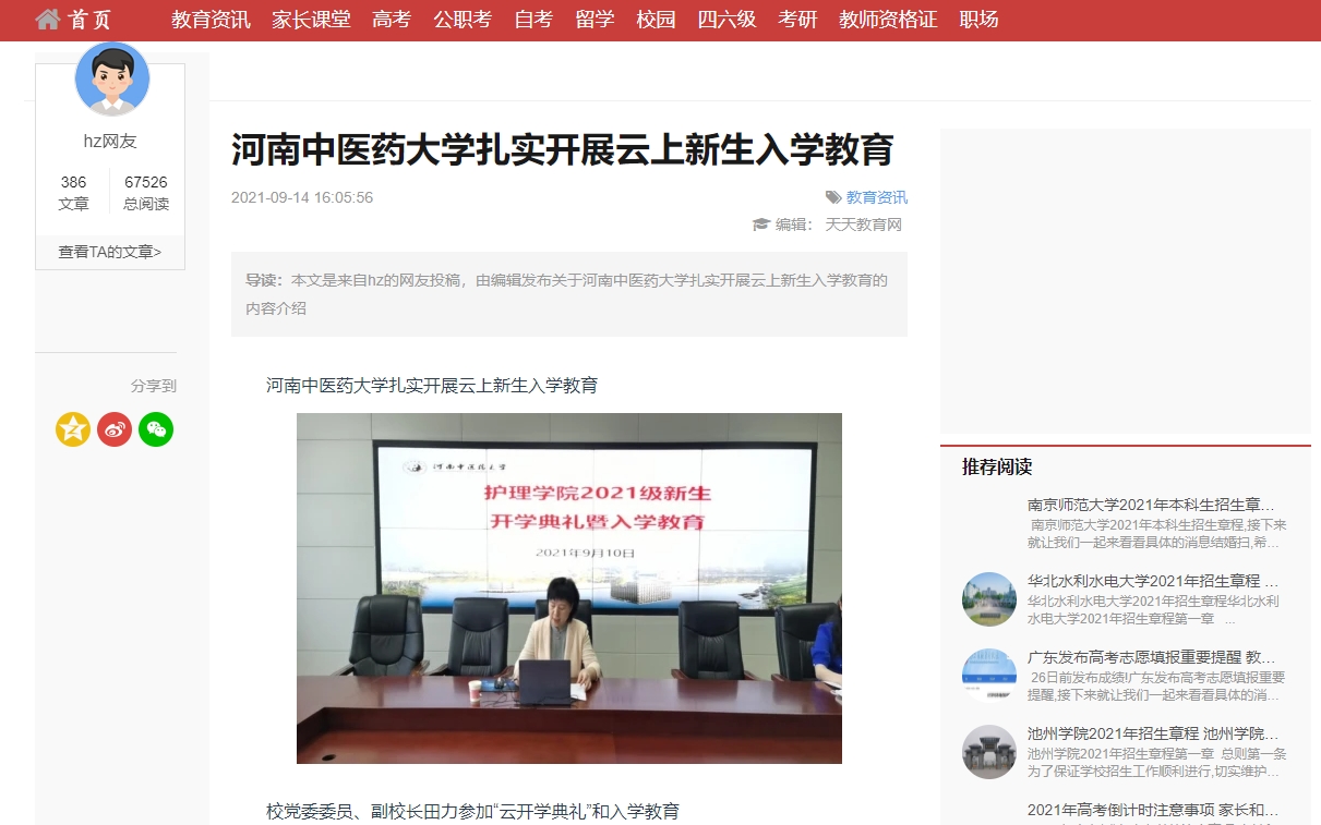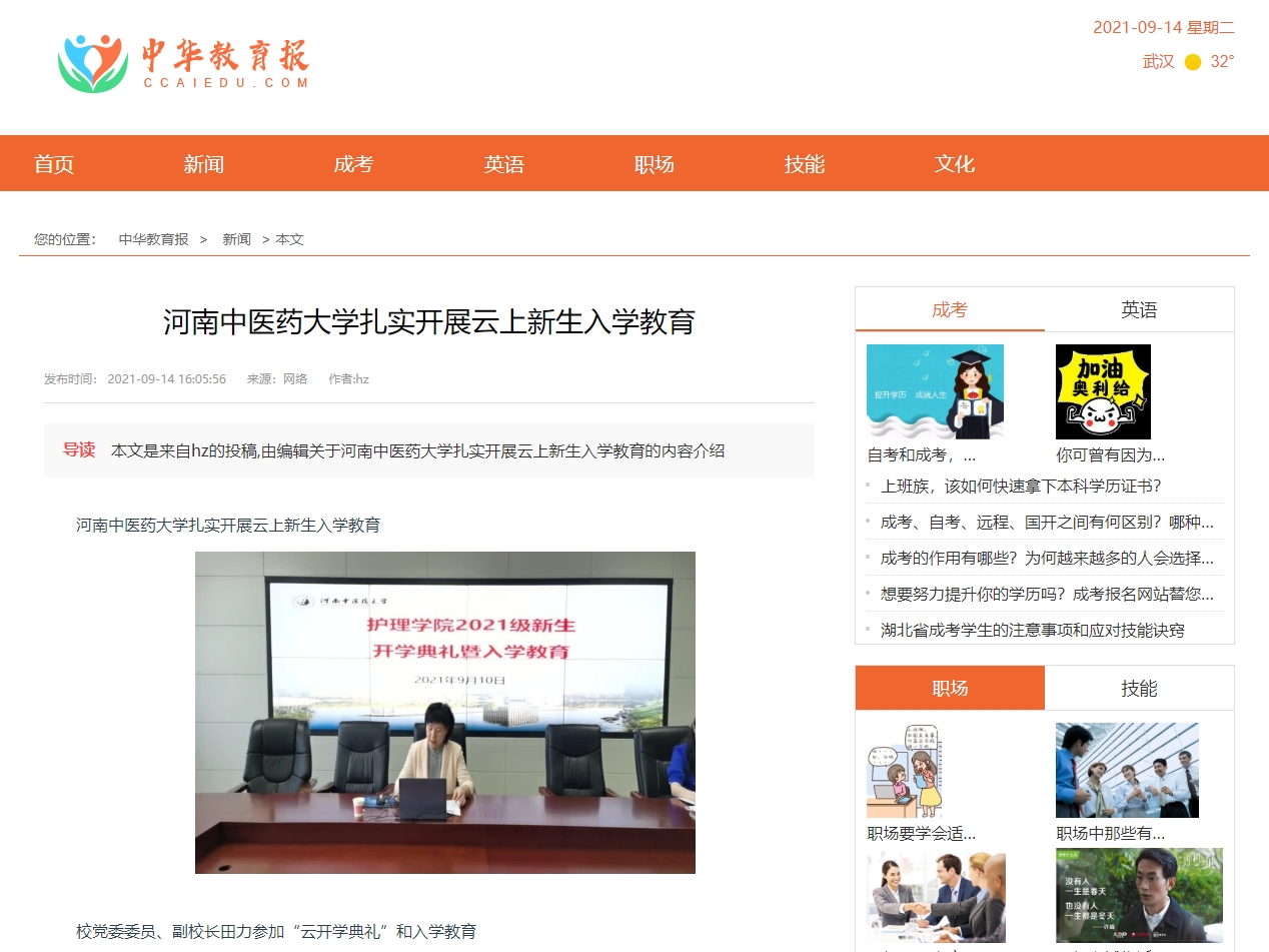 编者按:2021年9月14日,中华网、中华教育报、中华资讯网、大河网、天天教育网、人民养生网、全球教育网、中国台州网、中讯资讯新闻网、健康网资讯、中国新闻资讯网、健康在线网、中商网、科技微报网等多家媒体对leyu·乐鱼(中国)体育官方网站进行报道。