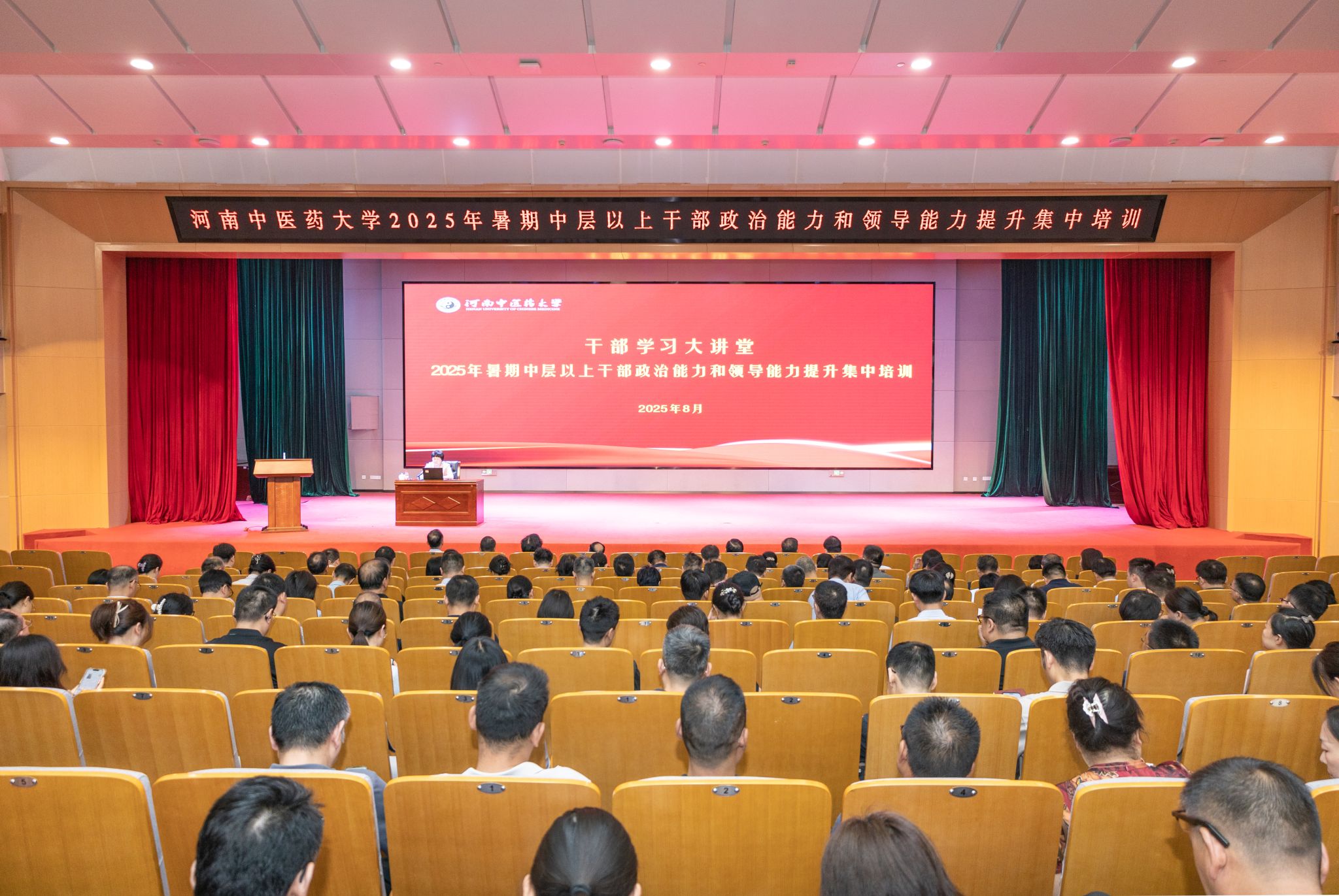 本网讯(文/刘召顺 图/吴晋一)为深入学习贯彻习近平新时代中国特色社会主义思想,持续强化干部队伍建设,经过精心谋划、周密筹备,2025年8月25日,学校“干部学习大讲堂”暨2025年暑期中层以上干部政治能力和领导能力提升集中培训班如期开班,开班式在俊学楼B101举行。全体校领导和中层领导干部、处级组织员、督导员参加集中培训。