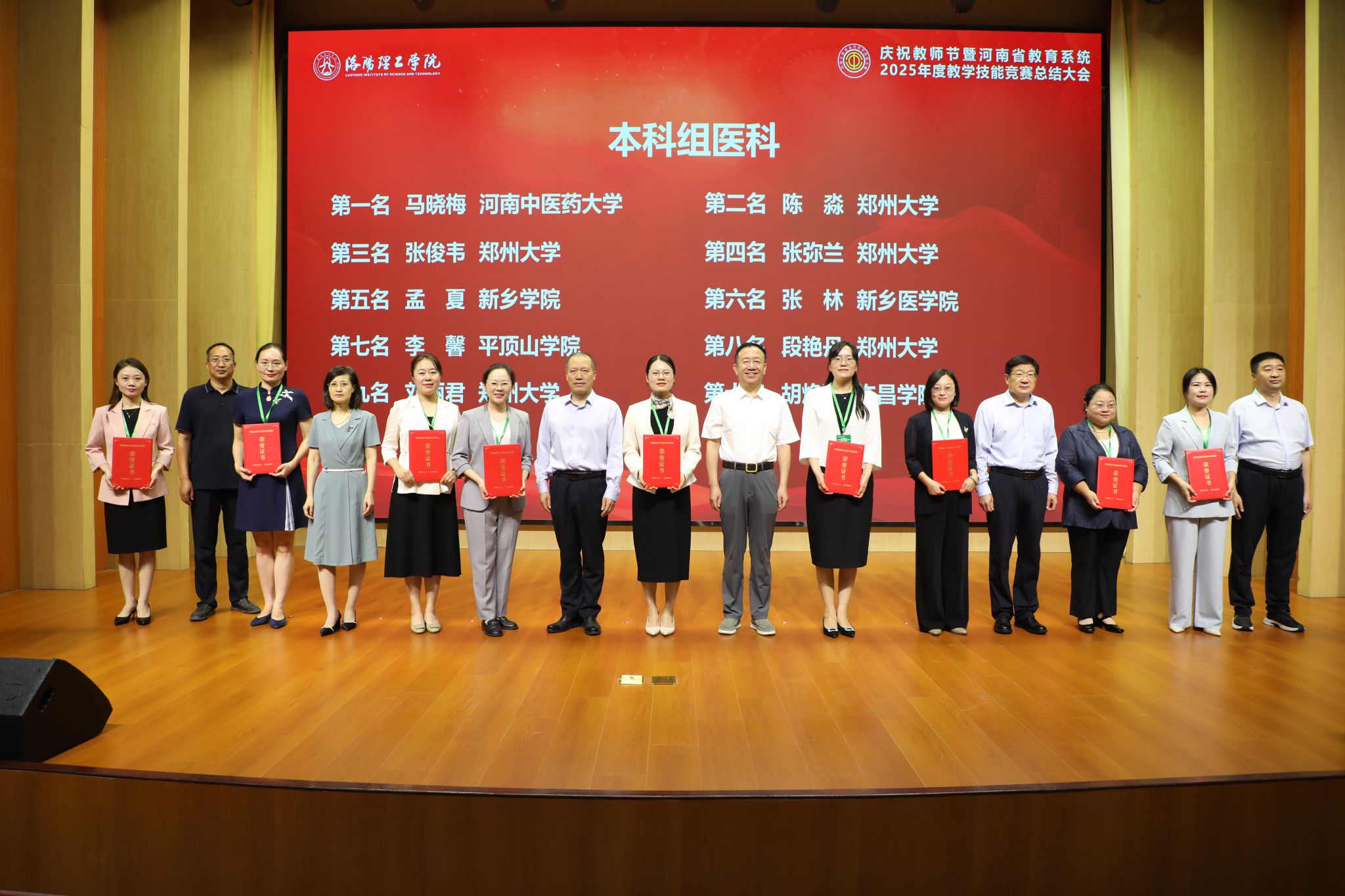 本网讯(文/图 荣文慧)8月28日至31日,由河南省总工会、河南省教育厅主办,河南省教科文卫体工会和洛阳理工学院承办的河南省教育系统2025年度教学技能竞赛现场决赛(本科、高职组)在洛阳理工学院举办,leyu·乐鱼(中国)体育官方网站医学院马晓梅老师凭借扎实的教学功底、创新的教学设计、良好的教学仪态和高质量教学效果,从全省本科组医科组参赛选手中脱颖而出,荣获本科组医科第一名。这是leyu·乐鱼(中国)体育官方网站继2014年和2016年以来,第三位荣获该竞赛最高等次的选手。