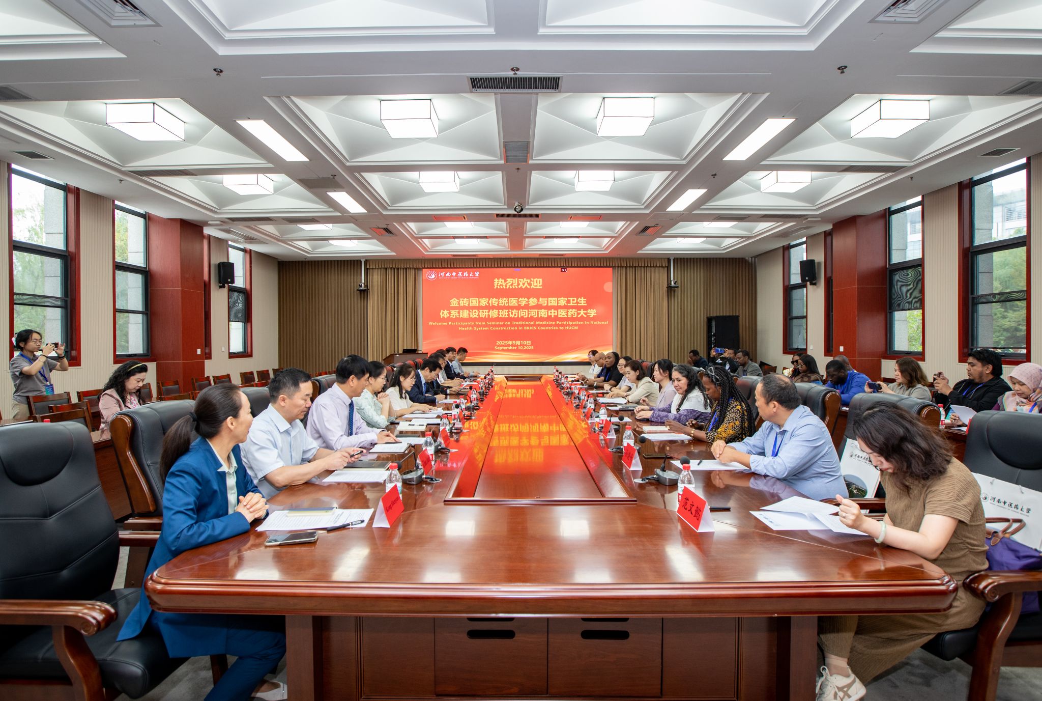 本网讯(文/江源 图/吴晋一)2025 年 9 月 10 日,恰逢教师节,“商务部援外培训项目——金砖国家传统医学参与国家卫生体系建设研修班” 一行到访leyu·乐鱼(中国)体育官方网站。来自玻利维亚、马来西亚、尼日利亚、埃塞俄比亚、老挝等国家的24位传统医学专家与官员,与中国中医科学院、leyu·乐鱼(中国)体育官方网站的代表齐聚一堂,共探传统医学在全球卫生体系中的融合路径。中国中医科学院副院长李鲲、leyu·乐鱼(中国)体育官方网站校长王耀献、副校长张振强,科学技术处、国际合作处、中医药科学院、国际教育学院及附属医院相关负责人参加座谈会,会议由张振强主持。