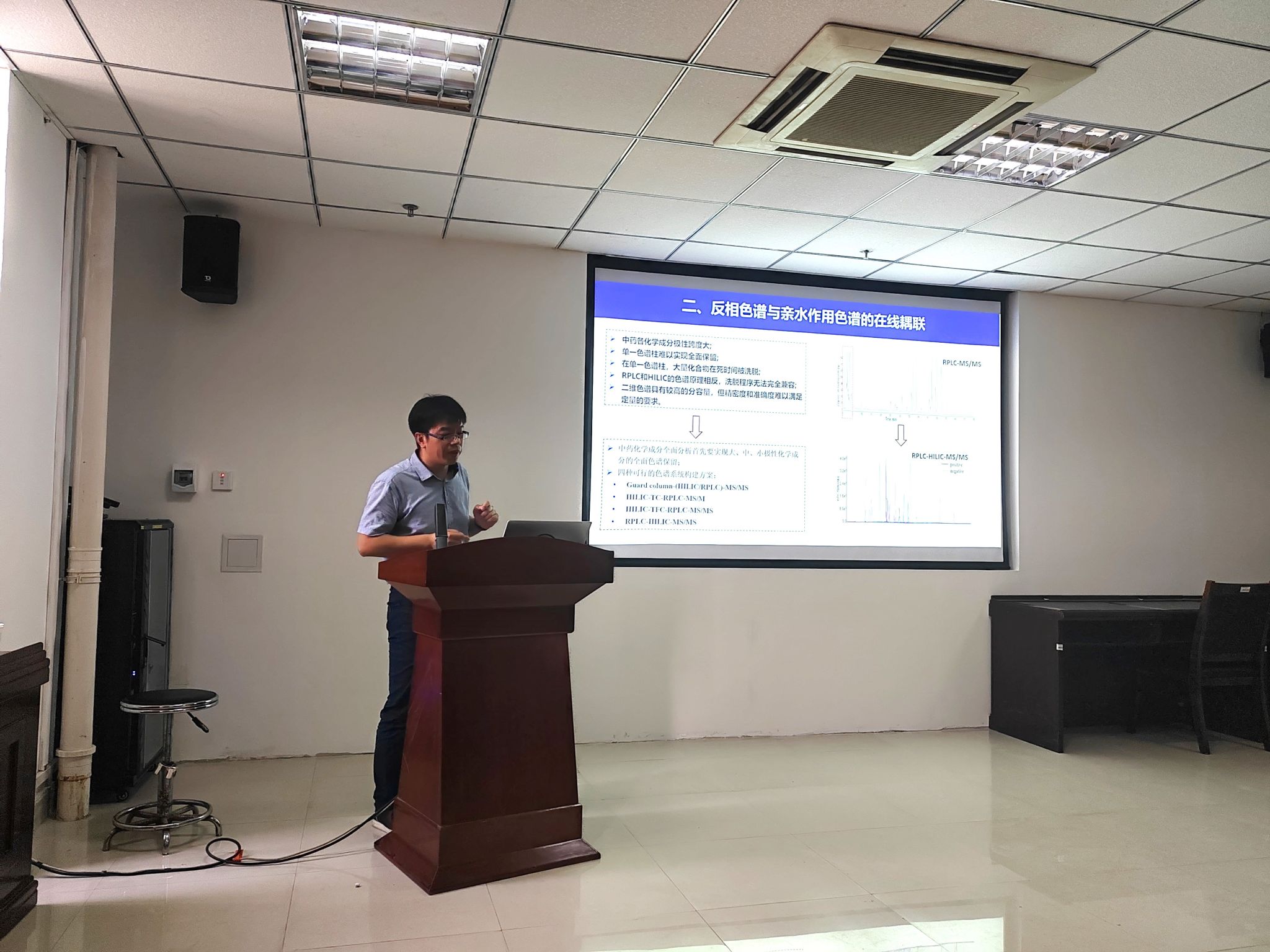 宋月林研究员近年来一直致力于中药分析新方法、新技术的开发,解决一系列制约中药化学成分准确定性、全面定量的技术难题,发表了一系列高水平文章,并入选了-青年拔尖人才、中国科协“青托”等人才项目。从样品制备、色谱分离、图谱采集及结构鉴定环节入手,他带领课题组分别建立了加压溶剂提取、在线能量分辨质谱、中药二进制码等一系列新颖分析技术和方法,实现了样品的直接分析、全面的色谱保留和分离、多维图谱的采集及化学结构和中药基原的准确鉴定,为中药化学成分分析水平的提高提供了助力。本次讲座中,宋月林研究员从在线加压溶剂提取方法的建立及应用、多柱色谱的建立及应用、氢氘交换质谱的建立及应用、在线能量分辨质谱法的建立及应用和中药化学成分二进制码的建立及应用等五个方面,向在场的百余位师生进行了较为详尽的汇报。报告结束后,宋月林研究员与现场师生进行交流讨论。