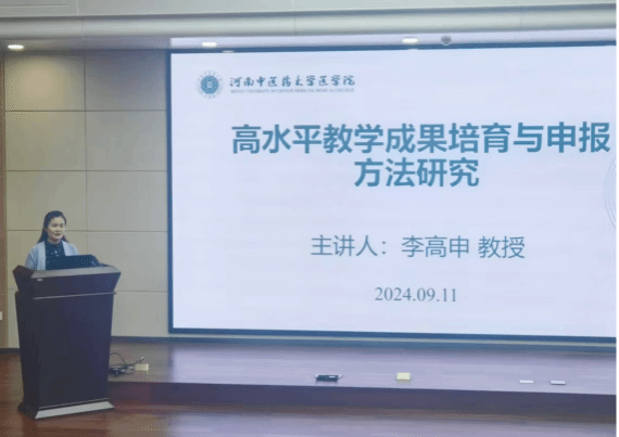 本网讯(文/王瑾瑾 图/郑万春)为积极响应学校大力开展教育教学综合改革的方针政策,进一步推动医学院高水平教学成果奖的培育与申报工作,2024年9月11日,医学院特别邀请河南省普通高等学校临床医学类教学指导委员会委员、河南省高等学校专业管理服务中心副主任、河南省教学名师、黄河科技学院教务处处长李高申教授在俊学楼A114举办百家讲坛活动。学校教务部副部长、教学质量评价与教育教学研究中心主任卢旻,医学院、护理学院(智慧康养护理行业学院)等院部基层教学组织负责人、骨干教师等参会。会议由医学院副院长冯龙主持。