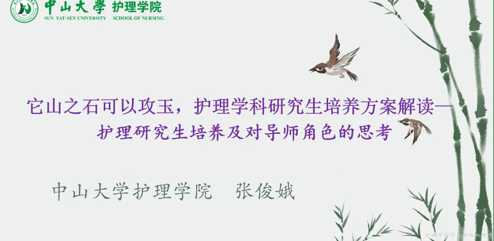 张俊娥教授,作为博士生导师,中山大学护理学院院长,中山大学教学名师,中山大学优秀硕士生导师,教育部学位与研究生主题案例首席专家,承担国家社科基金、中国高校产学研创新基金及省级科研项目等多项课题,拥有丰富的学术背景、深厚的科研功底以及卓越的教学和管理经验。本次讲座以“护理研究生培养及对导师角色的思考”为主题,围绕培养单位的要求、培养学生发展的新方向、对导师角色的定义、研究生培养过程的相关注意事项四个方面展开。张俊娥教授结合多年教学育人经验和对导学关系的思考,对中山大学护理学科研究生培养方案的内容进行深入解读,结合优秀学生具体实际案例,向我们详细讲解目前研究生培养的新转折点,深入浅出地为大家带来了一次难得的学术盛宴。讲座中张俊娥教授还与师生们进行了互动交流,回答了大家关于学科人才培养、护士规范化培训等方面的问题,为在场师生提供了宝贵的指导与启发。最后,学院副院长刘晓辉对张俊娥教授的精彩授课给予高度的评价,她指出,此次讲座不仅增强了导师对学科建设与研究生培养的理解,还为师生提供了实用的工作经验和研究指导。