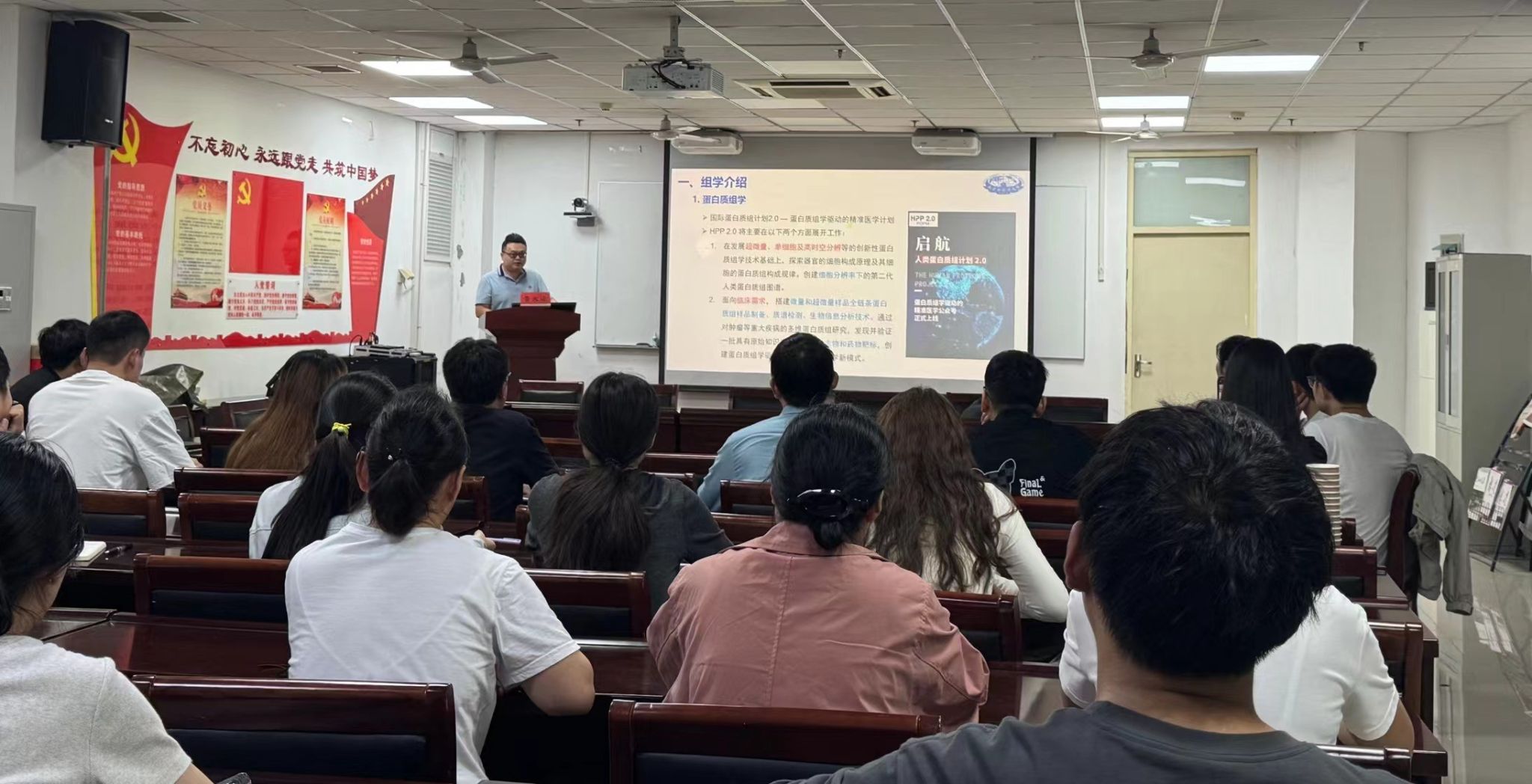 鲁大运博士在讲座中深入探讨了基于蛋白质组学的多组学特征及其在当代医学研究领域中的重要作用及发展现状。他以自己在该领域的研究成果为基础,详细阐述了多组学分析方法在探索肝癌、糖尿病外周神经病变以及冠心病的病理以及相关治疗中药的药理作用机制。在报告过程中,鲁博士与现场的师生进行了热烈的互动。他耐心解答了大家在科研过程中遇到的各种问题。这种深入的交流使得与会者对自己的研究方向和方法有了更清晰的认识,也激发了他们对未来研究的热情。