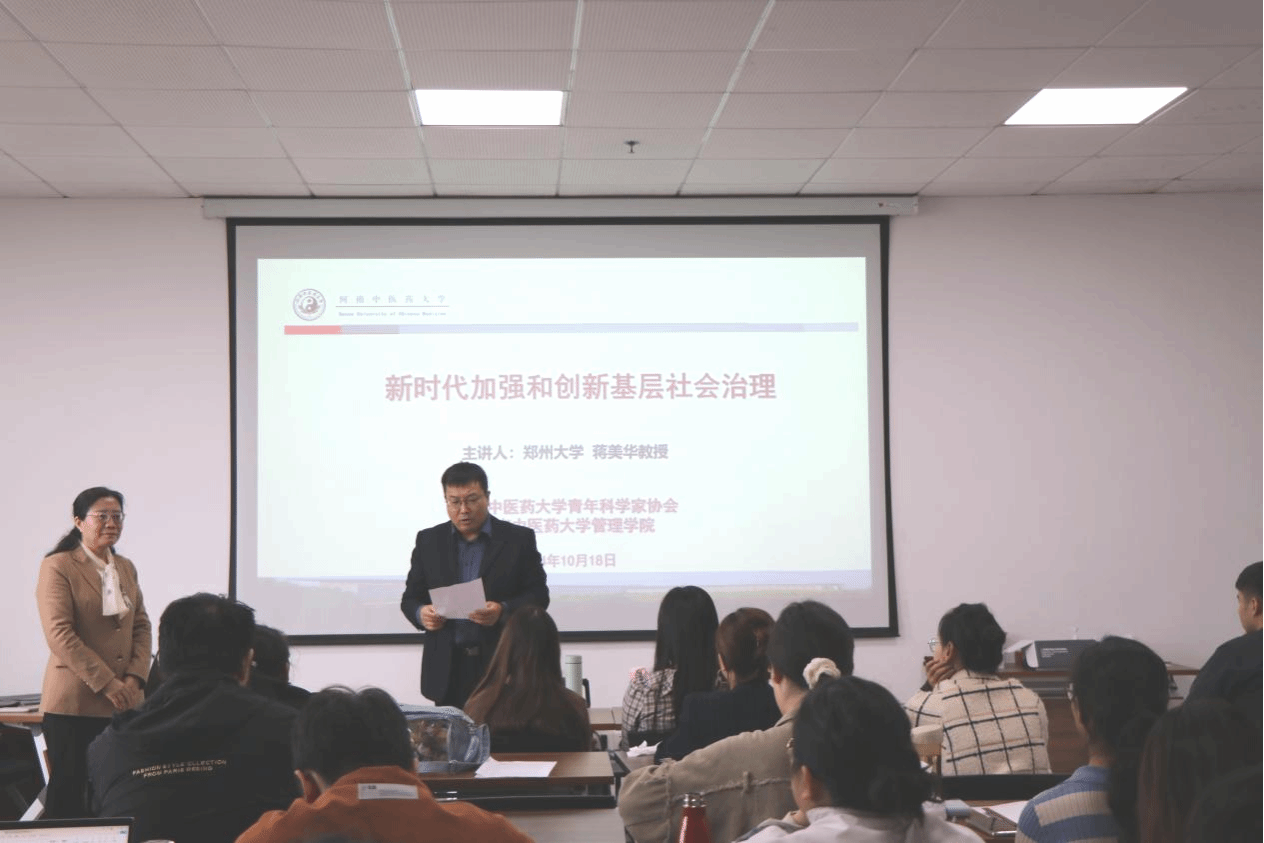 本网讯(文/李真 图/陈亚恬 )为拓宽学术视野,2024年10月18日,leyu·乐鱼(中国)体育官方网站青年科学家协会与管理学院邀请郑州大学蒋美华教授,为管理学院师生呈现了一场别开生面的学术盛宴。讲座以“新时代背景下基层社会治理的加强与创新”为核心议题,为听众深植了学术的沃土,激发了思维的火花。讲座由leyu·乐鱼(中国)体育官方网站青年科学家协会人文社科部主任、管理学院院长刘继刚教授主持,管理学院部分教师和MPA研究生参加了此次讲座。