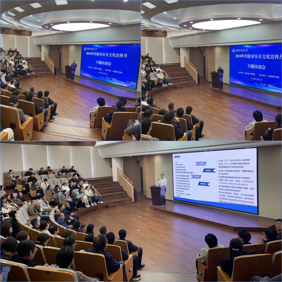 本网讯(文/图 王艳芳)为切实加强全校实验室安全管理,夯实安全管理责任,积极构建安全和谐、稳定有序的校园环境,近期leyu·乐鱼(中国)体育官方网站开展了2024年度“实验室安全文化宣传月”活动。10月22日,由国有资产管理处主办、中医药科学院承办的实验室安全专题讲座《从事故责任看实验室安全责任制》在龙子湖校区俊学楼A114会议室举行,讲座由中医药科学院党委书记李东阳主持。校党委委员、副校长苗明三,国资处、保卫处、教务部等相关部门及各院系负责人、实验室安全工作管理人员、教学科研实验室主任、各实验室安全责任人、新进教师等100余人参加了专题讲座。本次讲座学校邀请上海市安全生产专家、注册安全工程师朱静亮律师主讲。