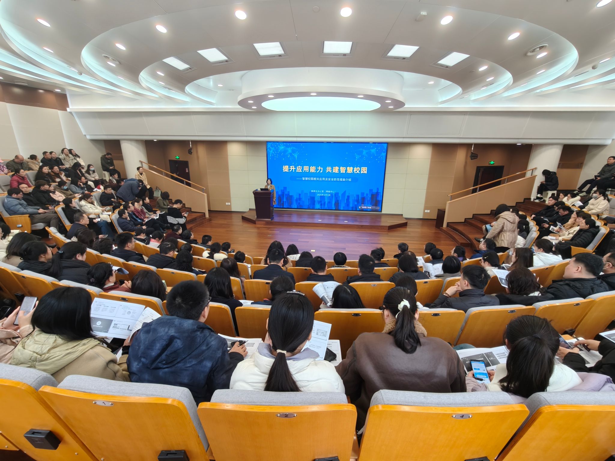随后,耿方方副教授以“提升应用能力·共建智慧校园”为主题,详细介绍了学校信息化建设的现状、智慧校园业务平台的使用方法以及网络安全防范措施。她结合学校新开通的网上办事大厅各模块功能,以及省内高校网络安全案例,深入剖析了智慧校园建设中的关键问题,并提出了切实可行的安全防护策略,为参训人员提供了宝贵的实践经验。