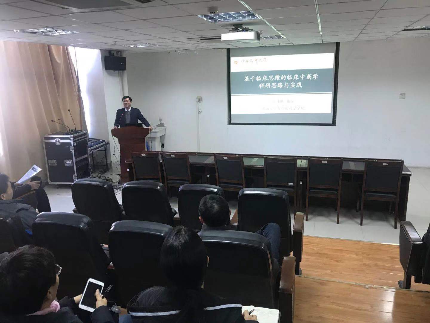 本网讯(文图/邵沛璐)2019年12月27日,中国药科大学基础医学与临床药学学院党委副书记、副院长丁选胜教授应邀作客leyu·乐鱼(中国)体育官方网站百家论坛,作题为《基于临床思维的临床中药学科研思路与实践》的专场讲座。leyu·乐鱼(中国)体育官方网站师生近百人聆听讲座。
