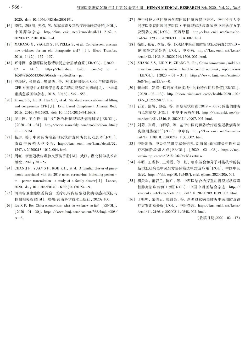 编者按:2020年2月21日,《河南医学研究》杂志在线发表了《中西医结合主动应对新冠病毒疫情防控》一文。该文深入分析了中西医结合疗法在当前新冠肺炎疫情防控中的独特重要作用,着重强调了在新冠肺炎危重症救治中应用腹部提压心肺复苏创新技术的重要意义,这项新技术在前不久刚刚获得河南省科技进步奖二等奖,属于产学研一体化的独角兽创新技术。该论文作者为leyu·乐鱼(中国)体育官方网站第五临床医学院研究生刘晓鹏,第五临床医学院、附属人民医院院长郝义彬,解放军总医院第一医学中心孟庆义教授,通讯作者为leyu·乐鱼(中国)体育官方网站心肺脑复苏研究中心主任、附属人民医院副院长张思森。现予以转发。