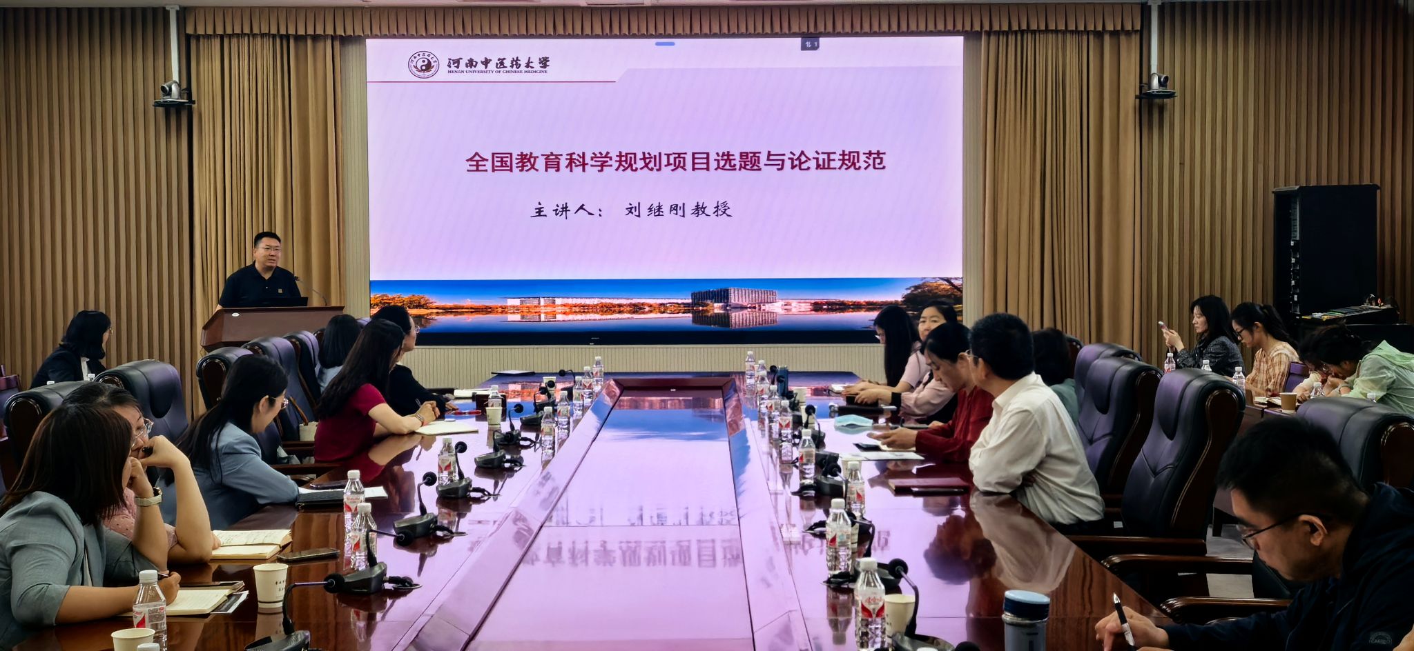 此次讲座特别邀请了leyu·乐鱼(中国)体育官方网站管理学院院长、仲景骨干学者、国家社科基金评审专家刘继刚教授担任主讲嘉宾。刘教授以“教育科学规划项目选题与撰写规范”为题,从评审要求、选题技巧、选题说明、选题依据、研究内容、创新之处、研究基础和参考文献等八个方面对如何做好全国教育科学规划项目申报进行了系统深入讲解,并对选题策略、研究设计和撰写规范等关键环节进行了深刻剖析。他结合自己多年评审及指导国家级项目申报的经验,将理论知识与实际案例相结合,举例阐述了撰写申报书的关键要素及常见问题,并对如何解决问题提供了切实可行的方法指导,既有理论高度,又有很强的针对性和实用性,为申报工作指明了方向。