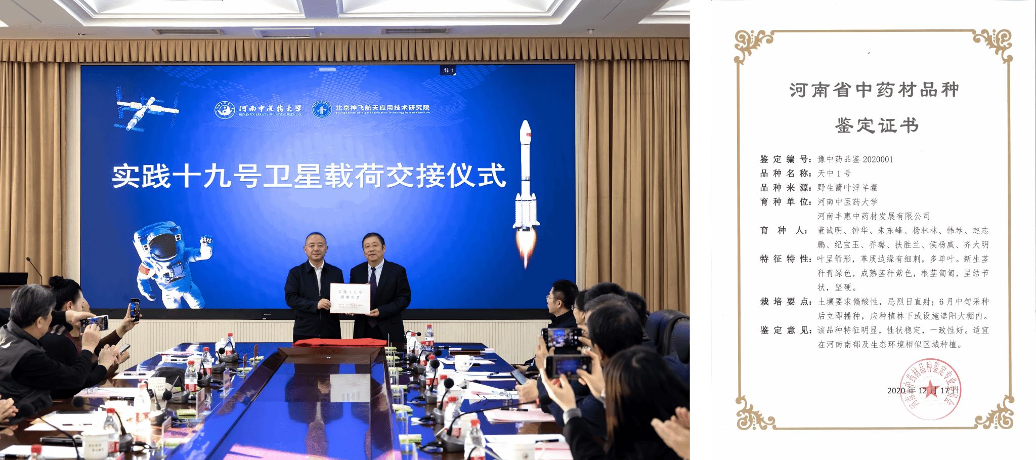 “太空种子”交接仪式及“天中1号”新品种鉴定证书
