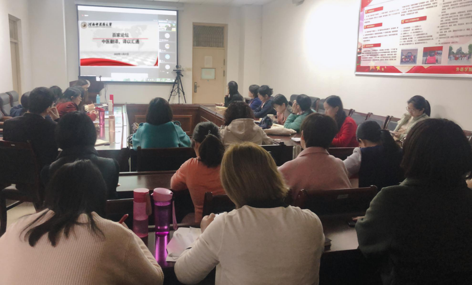 本网讯(文图/蒋宜轩)2020年11月21日下午,由科学技术处主办、外语学院承办的“百家论坛”在教学楼A638举行。中国译协常务副会长、中国翻译研究院副院长、全国翻译资格(水平)考试英语专家委员会主任黄友义,澳大利亚皇家墨尔本理工大学教授、中澳国际中医药研究中心联合主任及世界卫生组织传统医学合作中心主任薛长利,上海中医药大学国际关系学院副院长韩丑萍应邀作专题讲座。此次讲座通过线上直播模式开展,leyu·乐鱼(中国)体育官方网站100多名师生聆听讲座。讲座由外语学院副院长朱文晓主持。