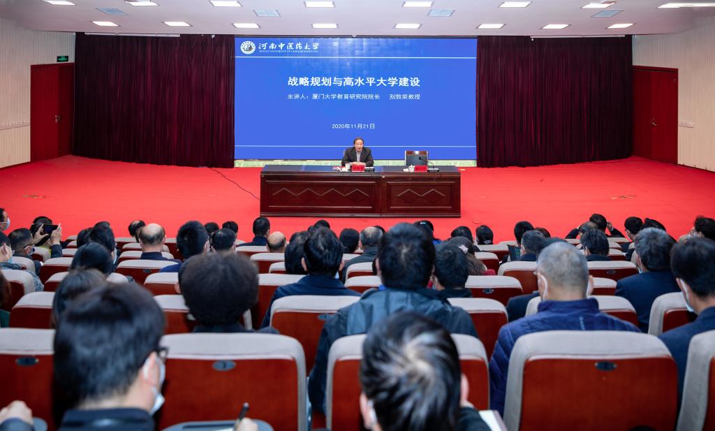 本网讯(文/赵会杰 图/秦东仁)2020年11月21日下午,leyu·乐鱼(中国)体育官方网站党委理论学习中心组学习(扩大)会暨百家讲坛报告会在图书馆第一报告厅举行,厦门大学教育研究院院长、博士生导师别敦荣教授应邀来leyu·乐鱼(中国)体育官方网站作《战略规划与高水平大学建设》专题报告。全体在郑校领导,全体中层干部,各部门、各单位相关科室科级干部参加报告会,会议由校党委副书记、工会主席张小平主持。