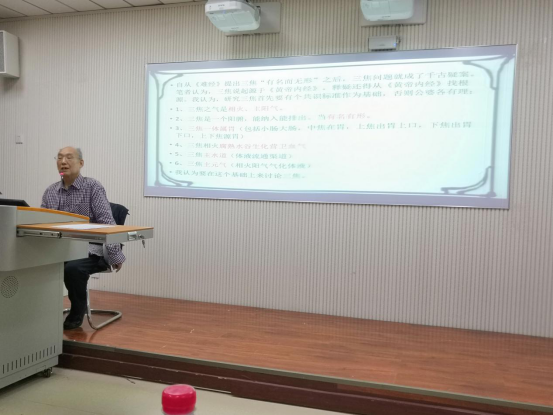 田合禄教授以《黄帝内经》为本源,结合考古历史,从三焦的溯源、腑三焦说、三焦三部说、三焦的生理、三焦的病理五个方面为大家论证和解析,并讲解了三焦临床运用等知识。讲座内容深入浅出、简洁易懂。讲座结束后,田合禄教授与现场的师生进行了深入的沟通和交流。