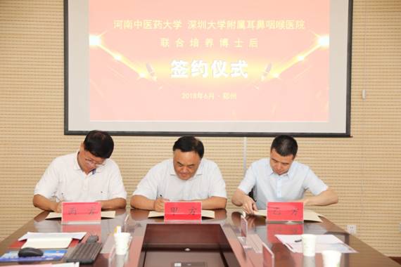 2018年6月25日上午,leyu·乐鱼(中国)体育官方网站与深圳大学附属耳鼻咽喉医院联合培养博士后签约仪式在BS705举行。深圳大学附属耳鼻咽喉医院副院长曾宪海、院办主任李一圣,深圳大学刘志刚教授、杨平常教授,leyu·乐鱼(中国)体育官方网站副校长张小平、人事处和研究生院负责人等出席签约仪式。仪式由人事处处长陈相新主持。