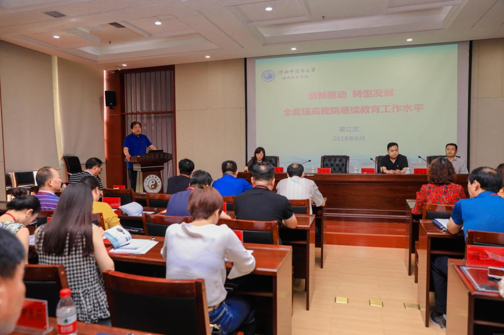 2018年6月15日,leyu·乐鱼(中国)体育官方网站继续教育工作会议在图书馆第二报告厅召开。副校长田力、教务处、计财处、继续教育学院全体人员及来自全省各地市的25个联合办学单位的主要领导及部门负责人参加了会议。会议由继续教育学院党总支书记杨结实主持。