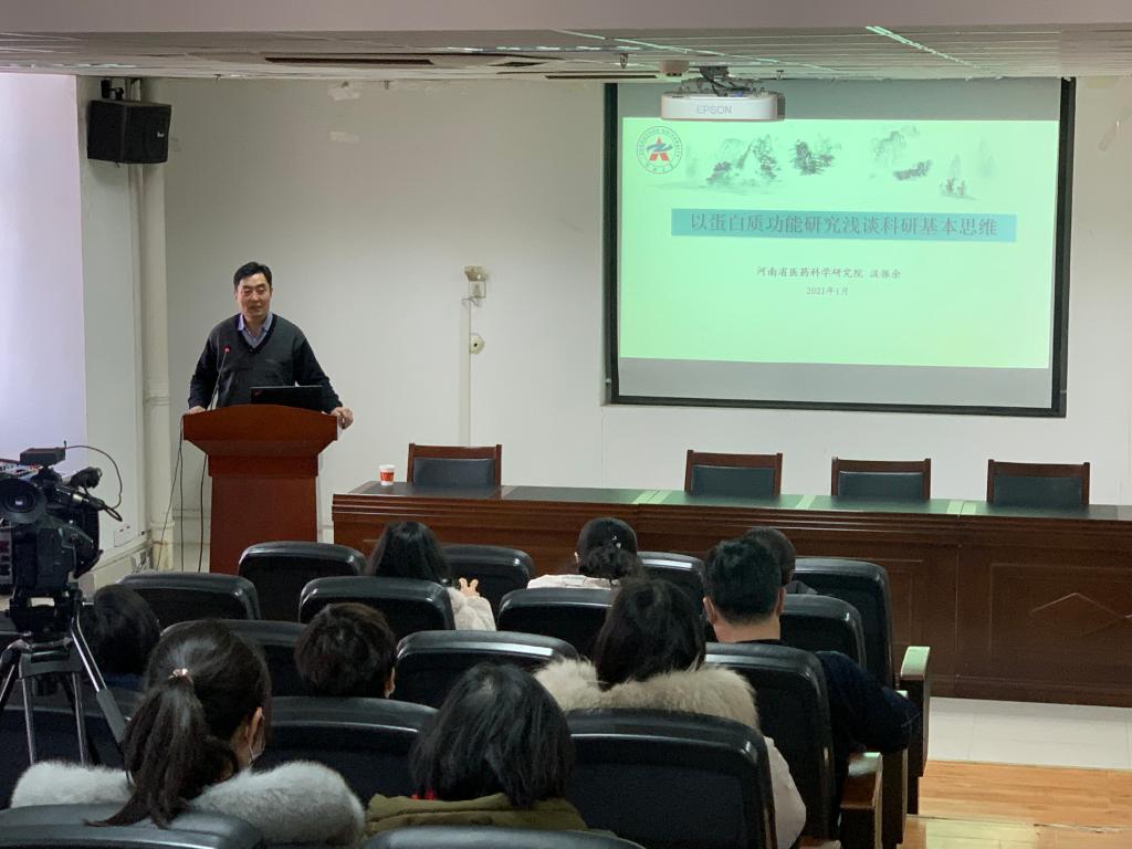 本网讯(文/邵沛璐 图/高妍)2021年1月12日,河南省(郑州大学)医药科学研究院院长、研究员、博士生导师汲振余应邀作客leyu·乐鱼(中国)体育官方网站百家论坛,以《以蛋白质功能研究浅谈科研基本思维》为题作专题讲座。leyu·乐鱼(中国)体育官方网站60余名师生聆听讲座,讲座由药学院副院长崔瑛主持。
