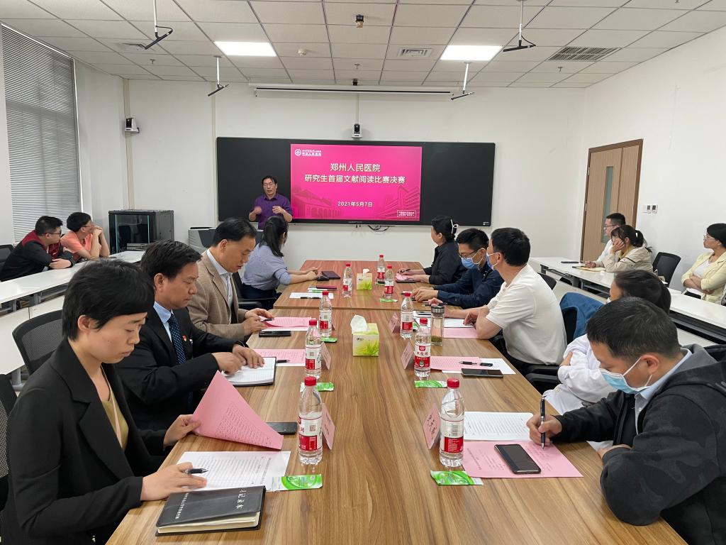 本网讯(文/图 裴青燕)为进一步提高研究生文献阅读能力和对学术前沿知识的储备,培养研究生的科研意识和创新潜力,激发研究生科研思维素养和转化科研成果的水平,营造浓厚的科研氛围和良好的学风,第五临床医学院于日前举办了首届研究生文献阅读大奖赛。2021年5月7日,大赛复赛顺利举行。第五临床医学院党委副书记吕雁、副院长张思森、李中心出席,大赛邀请到新乡医学院儿科学院院长李树军,leyu·乐鱼(中国)体育官方网站人民医院肿瘤内科主任梅家转、血液内科主任郭树霞、神经内科一病区负责人付胜奇、皮肤科史天威担任评委,五临床教学办主任杨季菱主持比赛。经过初赛的比拼,14名选手脱颖而出进入决赛环节,全院在院研究生观摩比赛。