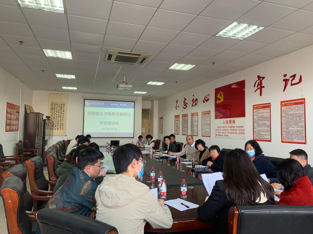 本网讯(文/朱鑫 图/张靖柯)根据学校《关于修定2021版本科专业学分制人才培养方案(专业培养阶段)的指导性意见》,药学院在人才培养方案修订工作专业指导委员会的指导下,在前期大类培养阶段课程确定的基础上,充分调研兄弟院校人才培养方案、深入研读教学质量国家标准、征求相关利益方意见,于2022年2月25日、3月2日召开了两次专业负责人专题修订研讨会。秉承“以学生为中心”的发展理念,3月4日上午,又召开了学生座谈会,学院副院长纪宝玉、各专业负责人以及教学办、科研办主任再次参加会议,并特邀7个专业大四的学生代表和正在leyu·乐鱼(中国)体育官方网站攻读硕士研究生学位的研究生代表共16人参加了会议。
