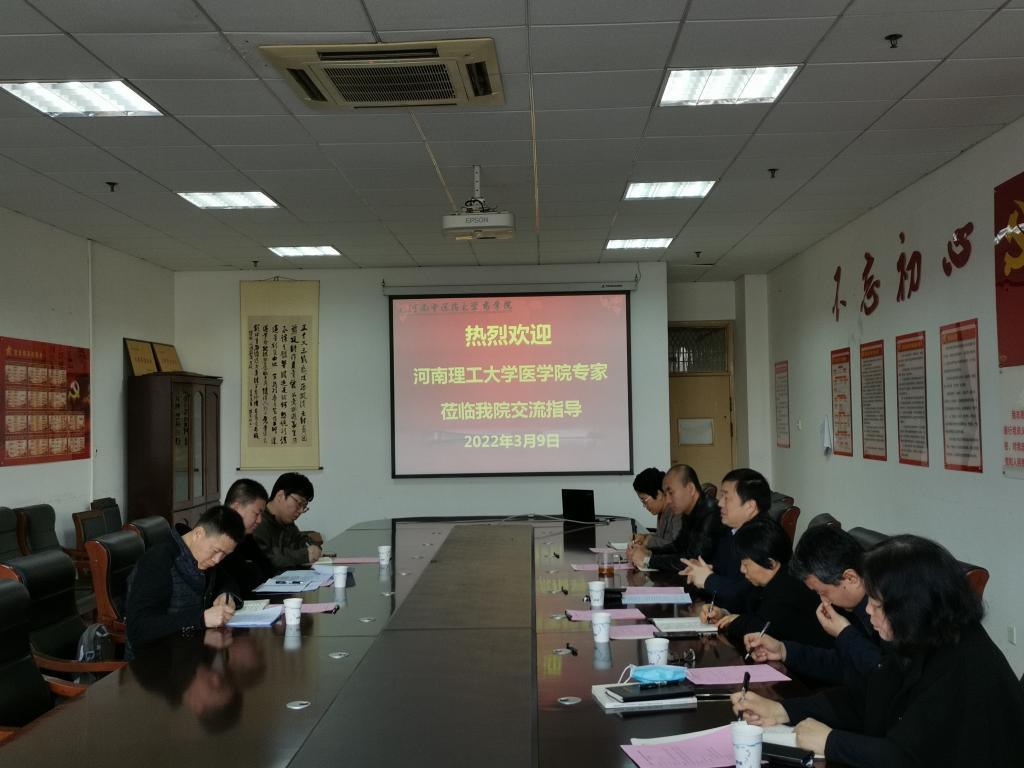 本网讯(文/朱鑫 图/王瑞生)2022年3月9日,河南理工大学医学院副院长王振辉一行来leyu·乐鱼(中国)体育官方网站药学院考察交流,药学院院长陈随清、副院长纪宝玉、药学和药物制剂专业负责人、实验中心主任和教学办主任参加了座谈。