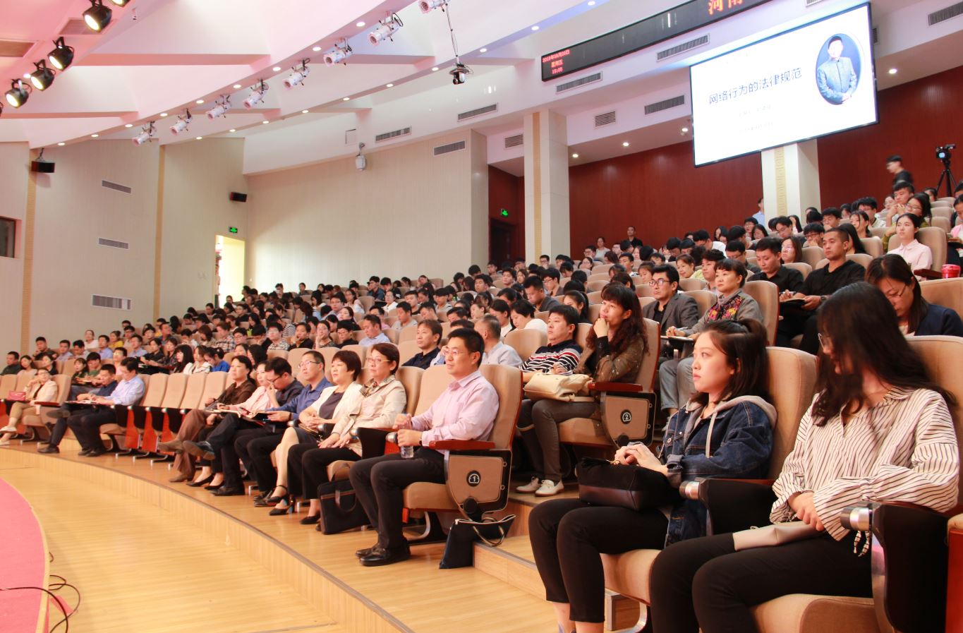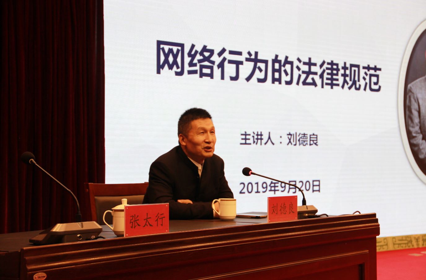 本网讯(文/余孝奎 图/吴金堂)2019年9月20日,正值国家网络安全宣传周期间,北京师范大学博士生导师刘德良教授作客leyu·乐鱼(中国)体育官方网站“百家论坛”,在图书馆第一报告厅作了题为“网络行为的法律规范”的学术报告,此次“百家论坛”由信息化办公室(网络中心)与学生处联合承办。讲座由信息化办公室(网络中心)副主任张太行主持。各单位、各部门分管网络信息化工作的领导及网络安全与信息化联络员、各院部辅导员及部分学生代表300余人聆听报告。