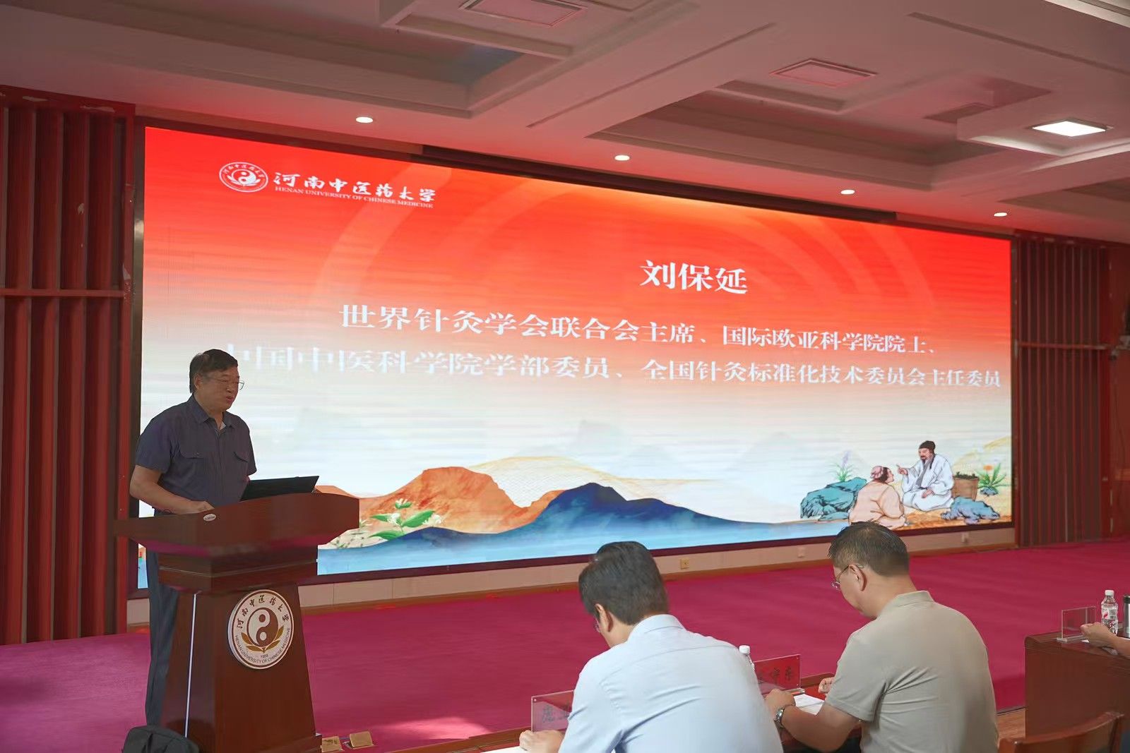 本网讯(文/图 刘涛)2025年8月29日,“世界针联针灸标准应用实施暨针灸高质量发展高级研修班”开班仪式在leyu·乐鱼(中国)体育官方网站龙子湖校区举行。本次高级研修班由河南省人力资源和社会保障厅主办,leyu·乐鱼(中国)体育官方网站承办,世界针灸学会联合会标准工作委员会提供技术支持。世界针灸学会联合会主席、国际欧亚科学院院士刘保延教授,河南省人力资源和社会保障厅专业技术人员管理处处长、一级调研员刘现生,专业技术人员管理处副处长、三级调研员吴军辉,leyu·乐鱼(中国)体育官方网站党委常委、副校长任献青教授,世界针灸学会联合会标准工作委员会副秘书长王超副教授,leyu·乐鱼(中国)体育官方网站继续教育学院院长、培训中心及继续教育管理办公室有关工作负责人出席开班仪式。继续教育学院、培训中心党总支书记庞亚宾主持会议。来自全省42家单位的56名专业技术骨干参加培训。
