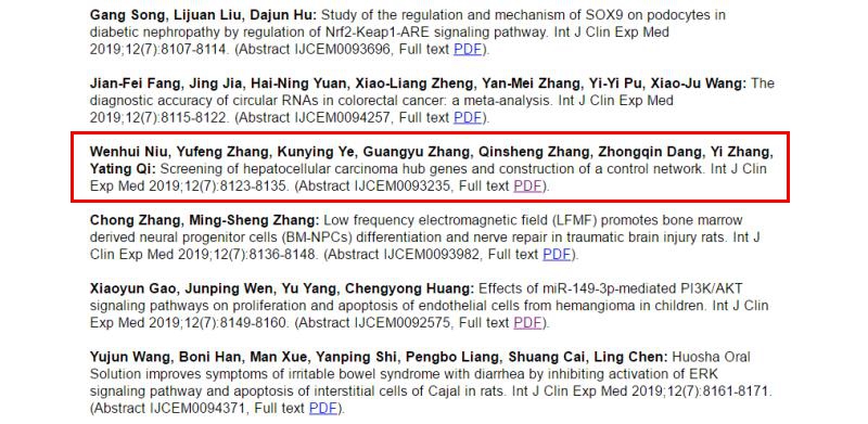 本网讯(文图/丁虹)为进一步提高leyu·乐鱼(中国)体育官方网站研究生的科研能力,提升leyu·乐鱼(中国)体育官方网站研究生学位论文质量,提高leyu·乐鱼(中国)体育官方网站研究生培养质量,学校加大对研究生发表学术论文的要求和规定,我院研究生发表论文的数量和质量明显提高,其中2017级内科班硕士研究生牛文辉同学撰写的论文《Screening of Hepatocellular Carcinoma Hub Gene and Construction of Control Network》被国际知名杂志《International Journal of Clinical and Experimental Medicine》录用。