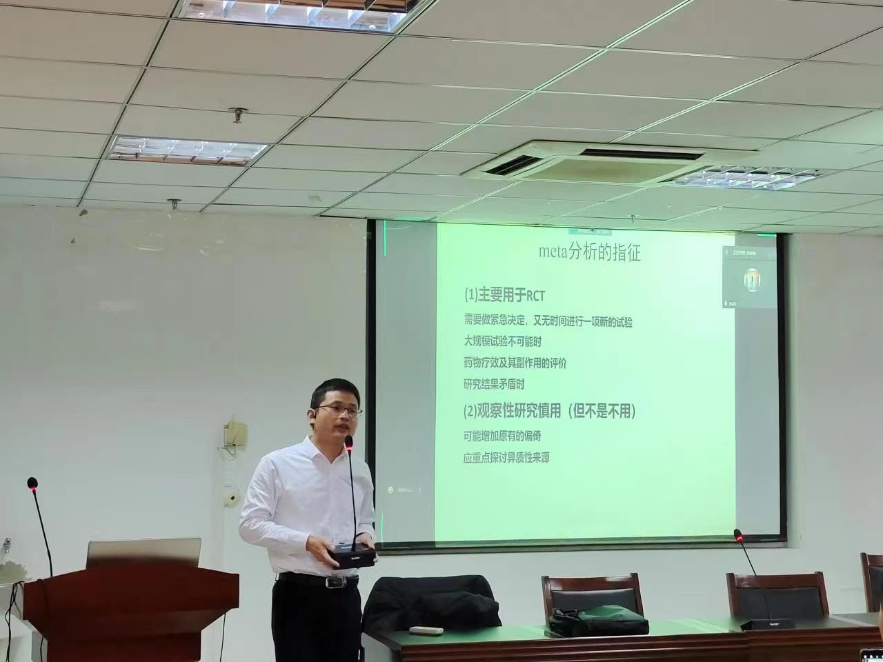 本网讯(文/陈晓辉 图/宋亚刚)为学习贯彻落实好《“健康中国2030”规划纲要》,活跃校园学术氛围。2023年2月4日上午,应leyu·乐鱼(中国)体育官方网站中医药科学院邀请,河南大学循证医学中心秘书、河南大学淮河医院普外科副主任医师王朝阳到leyu·乐鱼(中国)体育官方网站做题为《Meta分析概论》的专题讲座并与研究生进行学术交流。本次讲座在实验楼BN617采用“现场+线上”的形式进行,面向全校师生进行直播分享 Meta分析概论。讲座由中医药科学院国际免疫药理实验室常务副主任曹明卓主持。