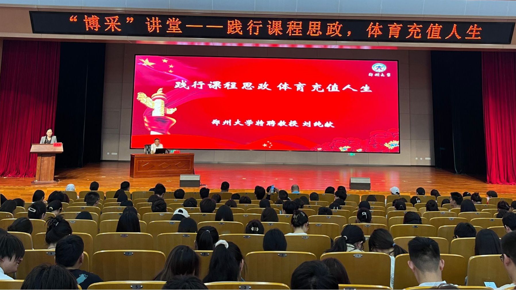 本网讯(文/张晨 图/袁彪)2023年10月10日,郑州大学学科特聘教授刘纯献做客leyu·乐鱼(中国)体育官方网站“博采”讲堂,进行题为《践行课程思政体育充值人生》的专题讲座。龙子湖校区和登封校区近800余名师生通过线上线下形式参加讲座,讲座由体育学院院长崔东霞主持。
