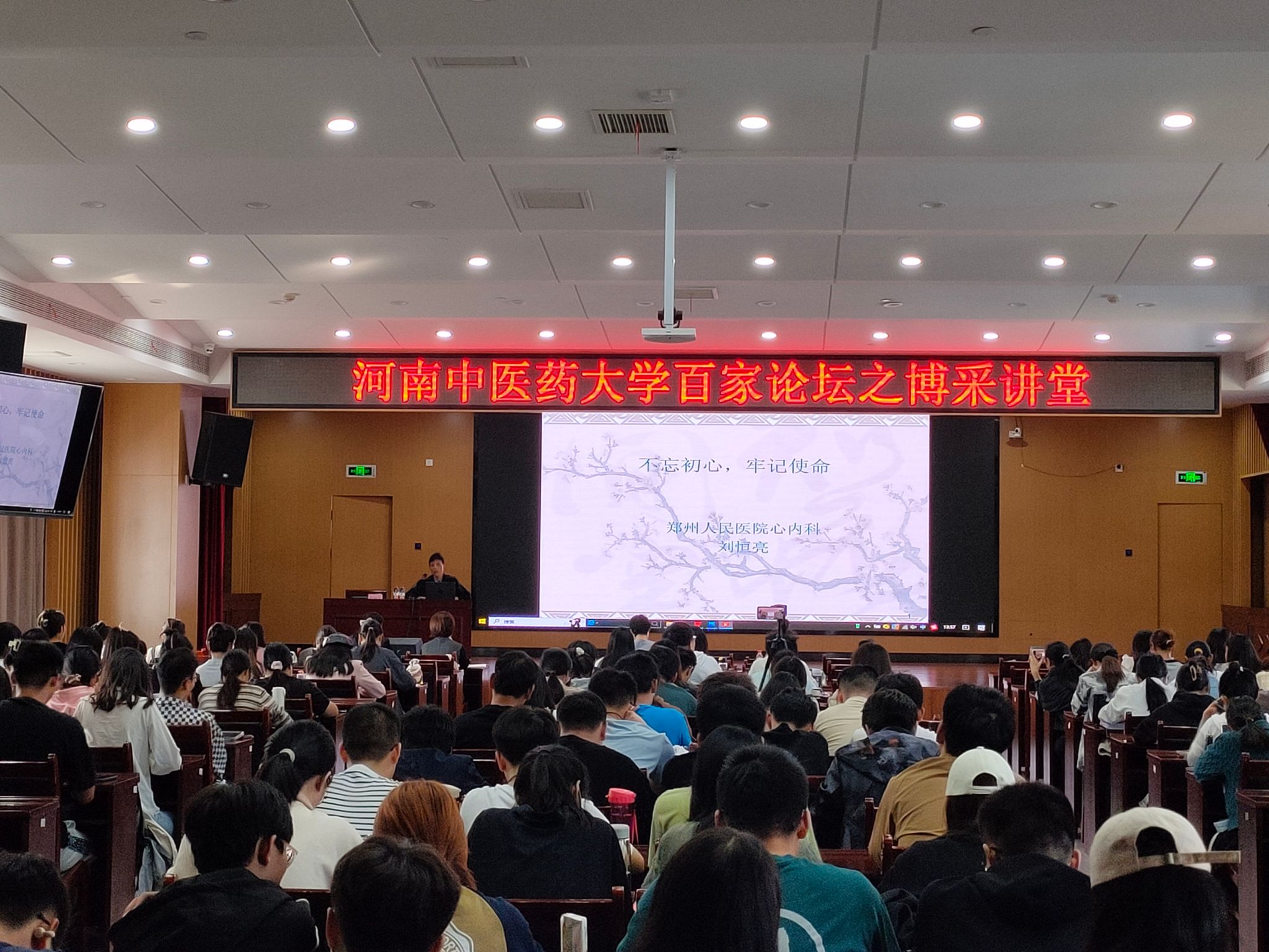 本网讯(文/王云露 图/孙蓓佳)为促进大学生专业素质、人文素养综合提升,不断提高人才培养质量,2023年10月10日,leyu·乐鱼(中国)体育官方网站“博采”讲堂邀请leyu·乐鱼(中国)体育官方网站人民医院心内科主任、中国医师奖获得者刘恒亮教授、普外三科名誉主任张俊杰教授作专题讲座。本次“博采”讲堂由第五临床医学院承办,学院党委副书记吕雁、辅导员、班主任及学生代表350余人参加,学工办主任刘曼主持。