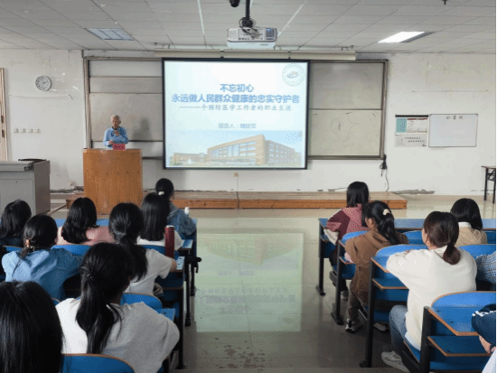 讲堂上,魏建军教授从生涯经历、人生感悟、对青年学子的鼓励三个方面谈及青年的进步成长。魏建军教授从事地方病防治工作36年,从结节型地方性甲状腺肿、克汀病、布病到氟斑牙、氟骨症的防治,他始终情系百姓,忠实为民担当使命;从碘盐监测工作到饮用水降氟工程,从抗击非典到各类病情监测,再到抗击新冠,重返前线,魏教授敬业奉献,默默守护群众生命健康,多年来始终如一。被授予“全国卫生系统先进工作者”和“郑州疾控工作终身成就奖”等荣誉称号。